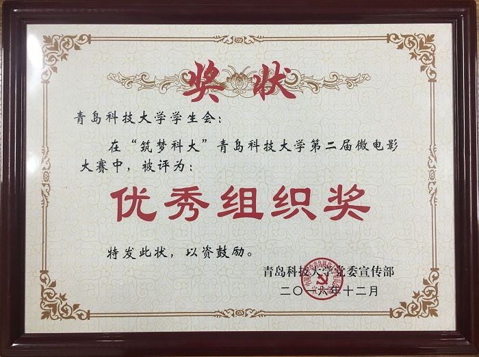 在“筑梦科大”AC米兰中国官网第二届微电影大赛中,校学生会获优秀组织奖,校学生会作品《合约》、《脱单的黄金法则》获三等奖,《校园美好生活》获优秀奖。