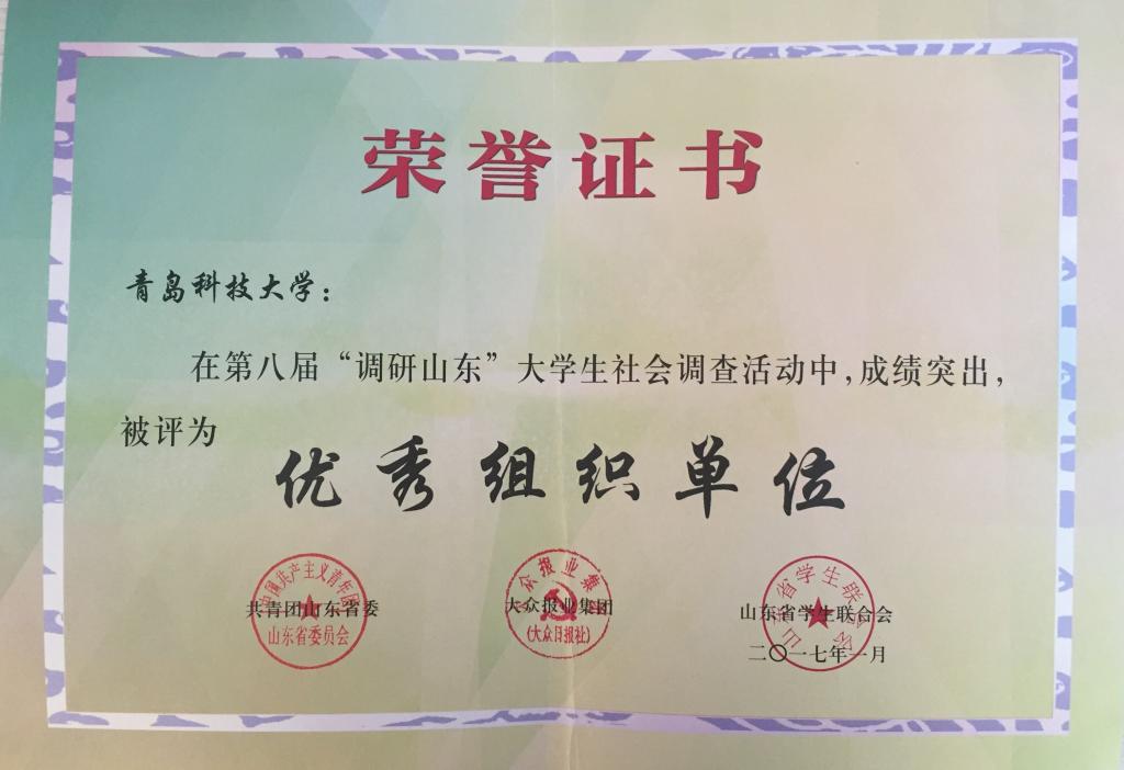 近日,团省委等单位发布了《关于表彰第八届“调研山东”大学生社会调查活动优秀组织单位、优秀指导教师和优秀调研成果的通报》(鲁青联[2017]6号),AC米兰中国官网获评第八届“调研山东”大学生社会调查活动优秀组织单位;徐华、刘建波、蓝惠霞获评第八届“调研山东”大学生社会调查活动优秀指导教师;高分子学院徐华老师指导、许展等同学参与的《兜牢民生底线 加快脱贫攻坚——单县脱贫工作情况调查》调研活动获优秀调研成果一等奖,环境学院刘建波老师指导、韩亚楠等同学参与的《青岛市垃圾分类现状调研——以市南区市北区为例》调研活动和蓝惠霞老师指导、毕耜静等同学参与的《高校环境工程专业实验室环境污染现状及处理状况调研——以AC米兰中国官网环境工程专业实验室为例》调研活动分获二、三等奖,另有高密校区、自动化学院、机电学院的三项调研活动获得优秀奖。
