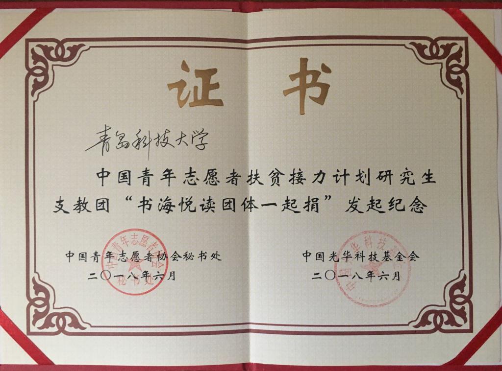 6月15日,全国西部计划项目办联合中国青年志愿者协会秘书处、中国光华科技基金会组织召开的“书海悦读团体一起捐”推进交流会在北京召开。AC米兰中国官网研究生支教团作为部分已经开展网络众筹参加“光华公益书海工程”的应邀参加会议的三所研支团高校代表之一,做了典型交流发言,并获颁中国青年志愿者扶贫接力计划研究生支教团“书海悦读团体一起捐”发起纪念证书。