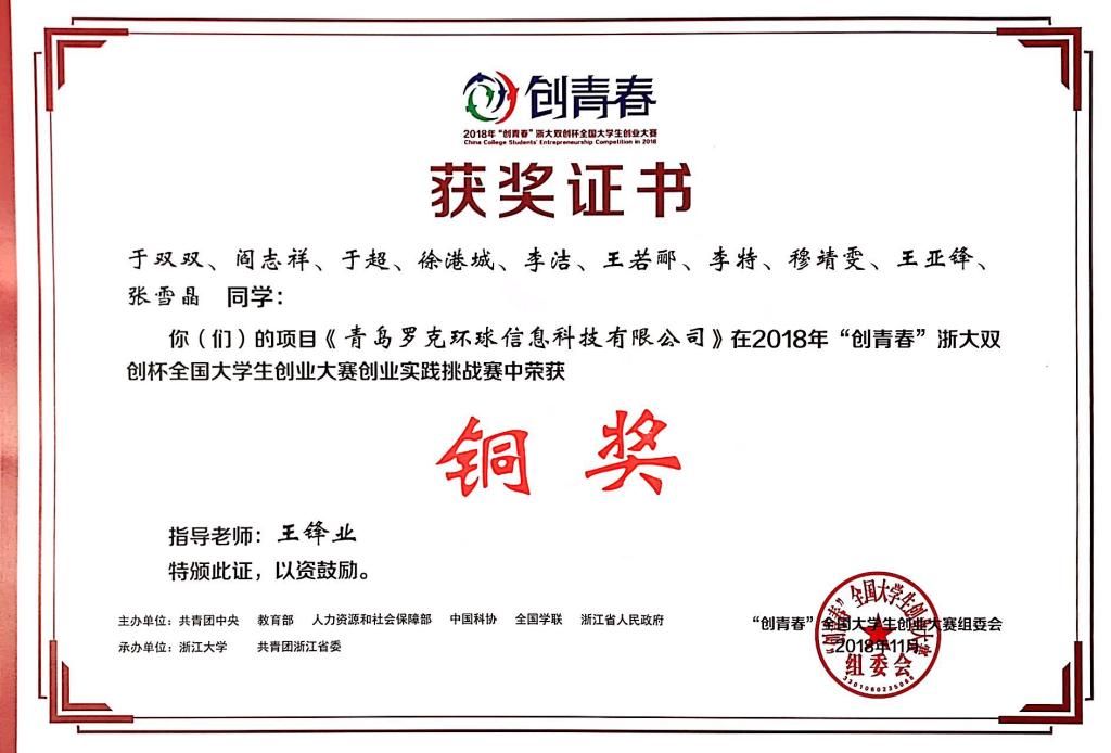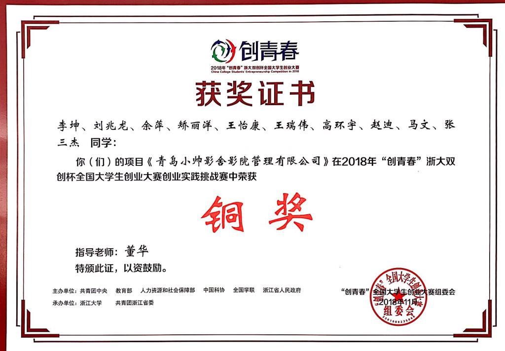11月3日,“创青春”浙大双创杯全国大学生创业大赛在浙江大学落下帷幕。米兰官网推送的作品《青岛罗克环球信息科技有限公司》和《青岛小帅影舍影院管理有限公司》获得创业实践挑战赛铜奖。本次大赛由共青团中央、教育部、人力资源社会保障部、中国科协、全国学联、浙江省人民政府主办,浙江大学、共青团浙江省委承办。