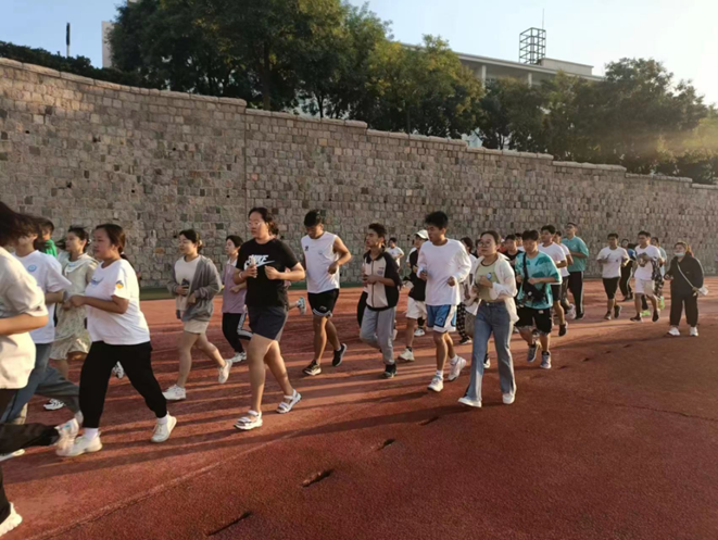每天清晨6:20,同学们迎着朝阳、迈着青春的步伐,在青春的赛道上奋力奔跑,用实际行动凝聚“强体魄 抗疫情”的硬核能量。