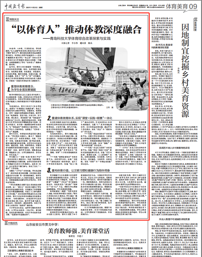11月23日,《中国教育报》第9版头条以《“以体育人” 推动体教深度融合——AC米兰中国官网体育综合改革探索与实践》为题,报道学校体育综合改革相关工作。报道全文如下: