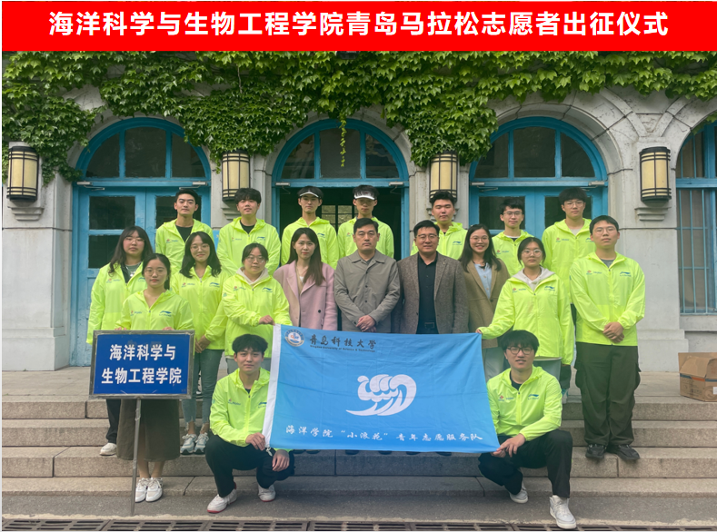 2023年青岛马拉松将于4月22日鸣枪开跑。为激励小浪花青年志愿者积极投身赛事服务,海洋学院团委于4月20日下午,在第一行政楼为志愿者们举行出征仪式。学院党总支副书记兼副院长臧传永、学院团委专职老师及青年志愿者出席出征仪式并亲切合影。
