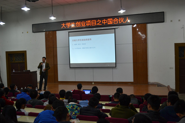 聂枫作为主讲嘉宾向同学们具体讲解了“中国合伙人计划”,从创业合伙人的重要性、如何选择创业合伙人、创业项目的选择等方面全面详细的介绍了一个项目从选择到创投的全过程。他以俞洪敏、胡振宇私人航天公司、苹果、微软等作为例子讲述了机会是留给有准备的人的。聂枫还重点阐述了当代大学生创业所面临的劣势。“高校学生,离开高校时间不长的毕业生,如果选择创业,你的最好的合伙人是你老师的项目,只因为可靠。”聂枫说。