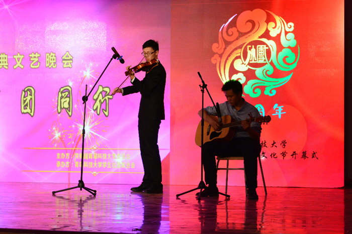 精彩厚重的开场视频带领观众们回顾了米兰官网学生社团联合会的发展历程和历届社团文化节的精彩瞬间。音乐爱好者协会带来的《乐器歌曲串烧》拉开了演出的序幕。轮滑社表演的《无轮无华》,以精彩的轮滑表演、高超的技艺水平赢得了观众们的阵阵掌声;奕剑阁陈氏太极拳协会、梅花桩武术协会、龙影双节棍协会、跆拳道协会带来的武术表演,展现武术运动的刚劲有力和武术文化的博大精深;由红十字学生分会、青年志愿者协会和雨希爱心社表演的手语《我们都一样》,以无声的语言展现了公益志愿类社团发扬志愿服务精神,传递社会大爱的高尚品格;魅影鬼步舞协会的鬼步舞表演、大学生艺术团的爵士舞表演、吉他协会的乐队演出、动漫社的动漫表演,充分展现了科大青年学子的青春风采和艺术水平;演讲与口才协会带来的朗诵《我的未来式》,向广大观众述说了大学四年的学习生活,引导广大青年学生珍惜时光,发奋成才;曲艺协会带来的相声《礼仪漫谈》,以其精彩的表演,展现了传统相声艺术的独特魅力。精彩的节目表演配以背景屏幕中各社团的风采展示,展现了米兰官网蓬勃发展的学生社团和厚重的社团文化。演出在四方校区社团联带来的合唱《相亲相爱一家人》中落下帷幕。