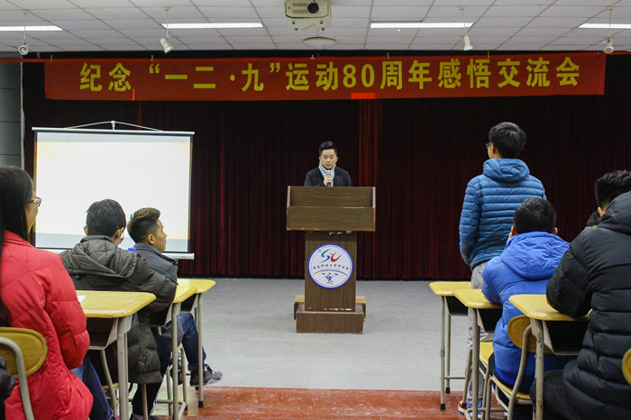 12月8日,校团委组织学生会、社团联学生骨干和青年学生代表举行了纪念“一二·九”运动80周年感悟交流会,广大青年学生结合自己对“一二·九”运动的认识,就“一二·九”运动的历史背景、历史意义,和“一二·九”运动带给当代青年学生的感悟和启示,进行了深入的交流,通过感悟交流,进一步加深了同学们对“一二·九”运动的了解,增强了使命感和责任感,明确了自己的努力方向和奋斗目标。