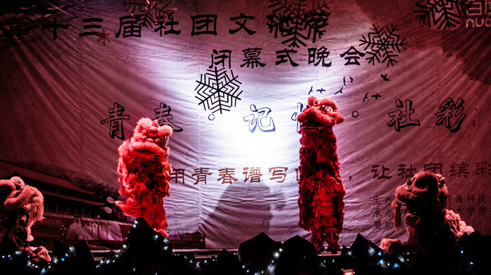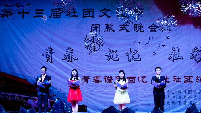 音乐爱好者协会激情动感的乐队奏唱拉开了晚会的序幕。军事爱好者协会带来的擒敌拳节目《精忠报国》,一招一式,气势恢宏,展现了青年学子的青春志、爱国情。轮滑协会带来的《轮之舞》,将轮滑表演与舞蹈相结合,动作优美,表演精湛,博得了现场观众的阵阵掌声。演讲与口才协会带来的朗诵《青春·社团·你我》,以倾情的诵读,展示了社团为广大青年学生带来的青春精彩,和广大青年学子的浓浓社团情。由梅花桩协会和龙狮拳术协会带来的武术表演《比武招亲·龙狮交汇》,以精彩的刀剑棍棒表演,展现了中华武术的博大精深,特别是龙狮拳术协会的龙狮表演,动作刚劲有力,配合轻、快的鼓点,四狮扑跌、跳跃、登高、朝拜,展示出龙狮的遒劲,高难度的动作表演和精彩的展示,将晚会推向了高潮。曲艺协会带来的幽默诙谐的相声表演《乐在今宵》,通过对捧哏和逗哏的精彩演绎,展示了相声艺术的无限魅力。Rosy女子舞团的街舞《Crazy》、沸蓝动漫社的宅舞《千本樱》、V5曳舞门的鬼步舞《曳灵镜舞》、交谊舞协会带来的交谊舞《远方》、双截棍协会带来的双截棍表演,展现了青年学生多彩的社团生活,和靓丽的青春风采。晚会在第三十二届校园十大歌手大赛四方校区十大歌手的歌曲串烧中落下帷幕。