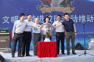 青岛市旅游局巡视员骆万飞致辞。与会领导为文明旅游志愿者授予马甲、明信片等文明旅游宣传品。现场领导们共同触摸助力球,启动了本次“正青春 正能量”文明旅游进校园活动。仪式结束后,举行了文明旅游进校园专场音乐会。