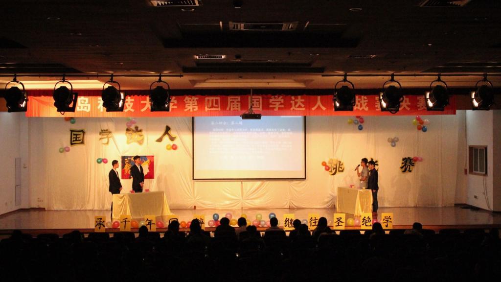 本届国学达人挑战赛自2017年4月在崂山校区、四方校区和高密校区启动以来,各学院、校区团组织积极发挥基层团组织的积极性和创造性,采用趣味性、实用性、灵活性的赛事设计,调动广大青年学生普遍参与的热情,注重参与的广度,以“层层挑战、层次选拔”的方式,逐级产生班级、年级、院级“国学达人”。经过初赛、复赛、校区决赛的选拔,有12名选手进入了总决赛环节。总决赛现场分为知识问答、情景再现、思想论述三个环节,选手们以深厚的国学功底,对答如流,精彩的抢答博得了现场阵阵掌声,历史文人角色扮演、看图配诗词等,更是展现了选手们的机智灵活和良好的国学素养。
