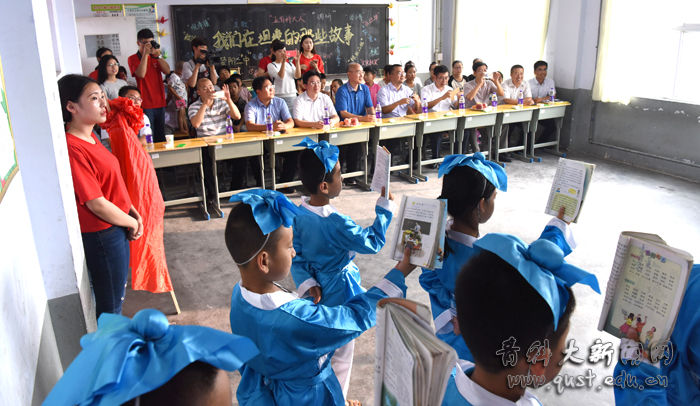 在西坦埠村,陈克正看望了高密校区“与第一书记同行”教育和文化扶贫实践调研团的志愿者,听取了志愿者开展的“团小青故事会”,志愿者们通过对第一书记工作的纪实采访,以讲故事的方式,配以影像资料,向大家讲述了第一书记的工作,展现了“第一书记”的奋斗风采。随后,他观摩了实践团队开设的支教小课堂。接下来,陈克正参加了青科大高密校区与坦埠镇共同建设的“镜湖之声”网络志愿服务站的揭牌仪式,为服务站揭牌,并听取了网络志愿服务站的设立背景和工作开展机制汇报。
