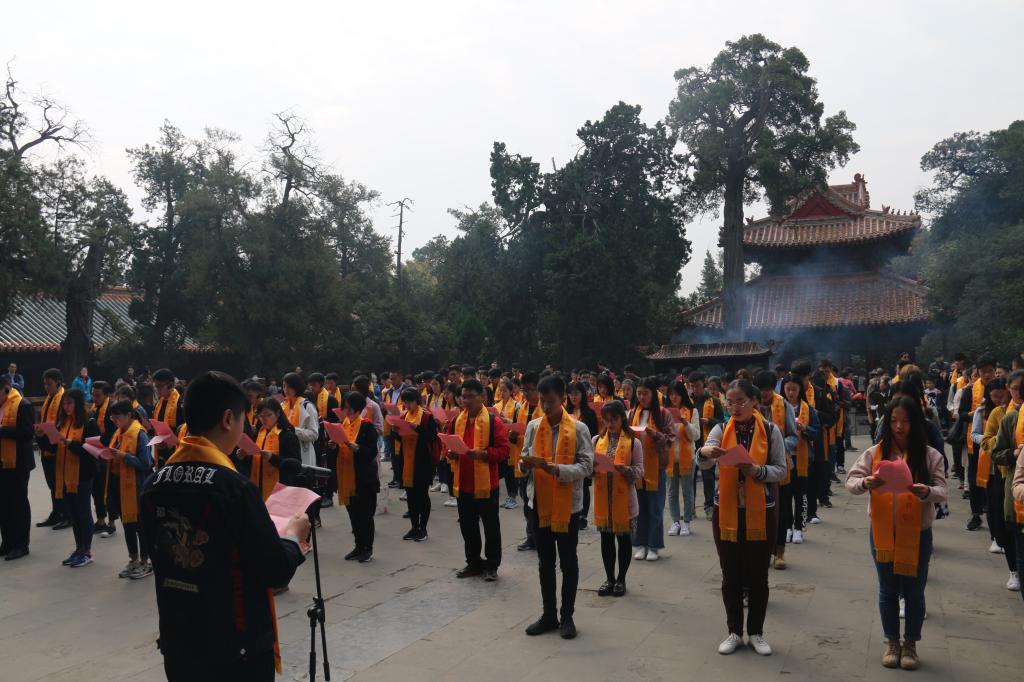 10月14日,由中国孔子基金会、中华全国学生联合会、共青团山东省委联合主办的第四届第二期中华学子朝圣行活动在山东曲阜举办。AC米兰中国官网29名青年学生骨干与来自全国十余所高校的400余名师生齐聚曲阜,体验和感受儒家文化的博大精深和中华传统文化的独特魅力。