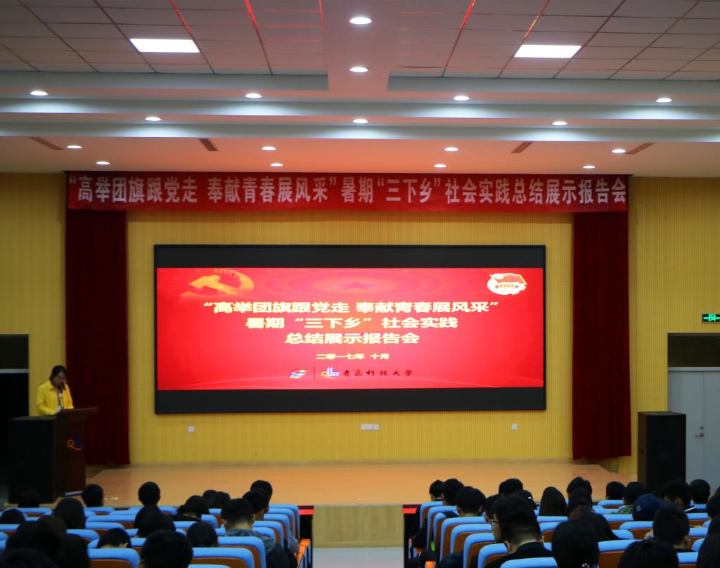 为贯彻落实党的十九大精神,展现2017年暑期“三下乡”社会实践活动风采,引导青年学生交流社会实践体会、分享实践成果,进一步提升社会实践活动的育人效果,10月31日,“高举团旗跟党走 奉献青春展风采”暑期“三下乡”社会实践总结展示报告会分别在崂山校区、四方校区举行。