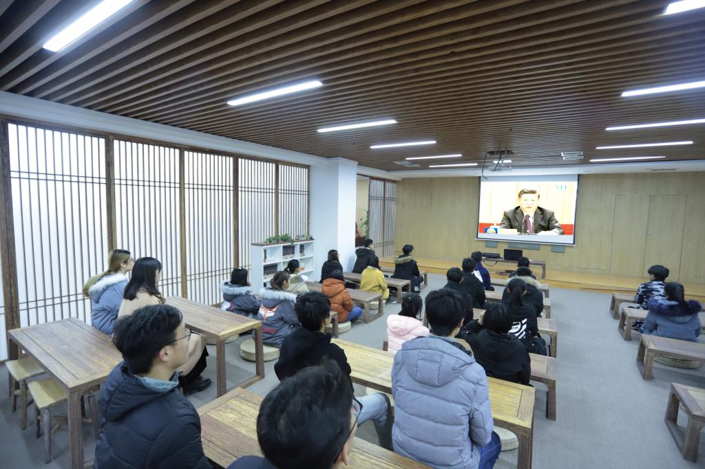 12月18日晚,学生会骨干在崂山校区孔子学堂“原汁原味”学习习近平总书记在庆祝改革开放40周年大会上的讲话,热议改革开放40周年的发展成就。学生骨干王安琪说:“改革开放40年,是中国人民艰苦奋斗波澜壮阔的40年。作为新时代大学生更要发扬敢闯敢试,敢拼敢干的改革精神,努力成长为德智体美劳全面发展的社会主义建设者和接班人,为实现‘两个一百年’奋斗目标和中华民族伟大复兴的中国梦贡献自己的青春力量。”