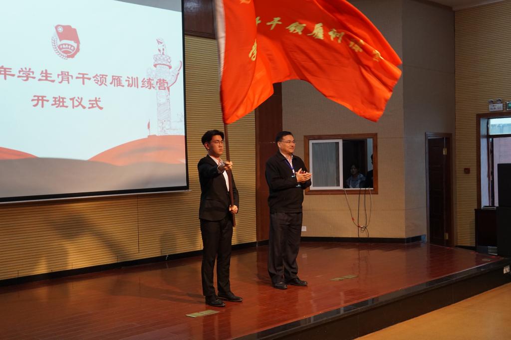 仪式上,陈刚代表学校向青年学生骨干领雁训练营培训班授旗。王锋业在仪式上指出,训练营是以“青马工程”为依托,针对青年学生骨干开展的精准培训,王锋业希望全体学员要遵守班规,一要坚定理想信念,志存高远,勇于奋斗;二要珍惜学习机会,提升素养,练就本领;三要主动服务青年,攻坚突破,开拓创新。