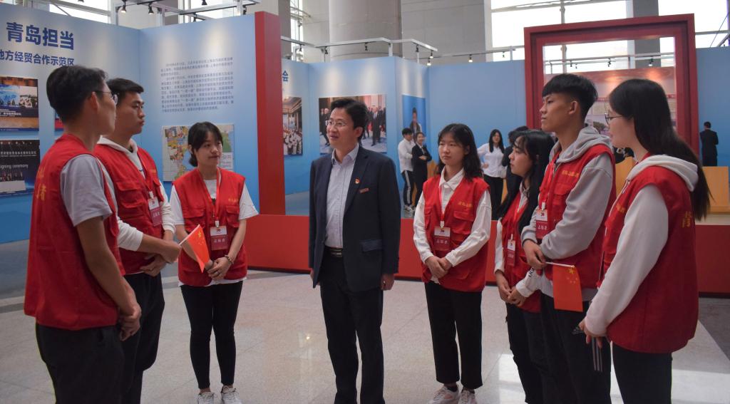 值新中国成立70周年之际,10月10日上午,团委党支部全体党员和校学生会、研究生会学生骨干来到青岛国际会展中心,参观庆祝新中国成立70周年青岛成就展,开展“致敬70年 青年话担当”主题党日活动,推进“不忘初心、牢记使命”主题教育。