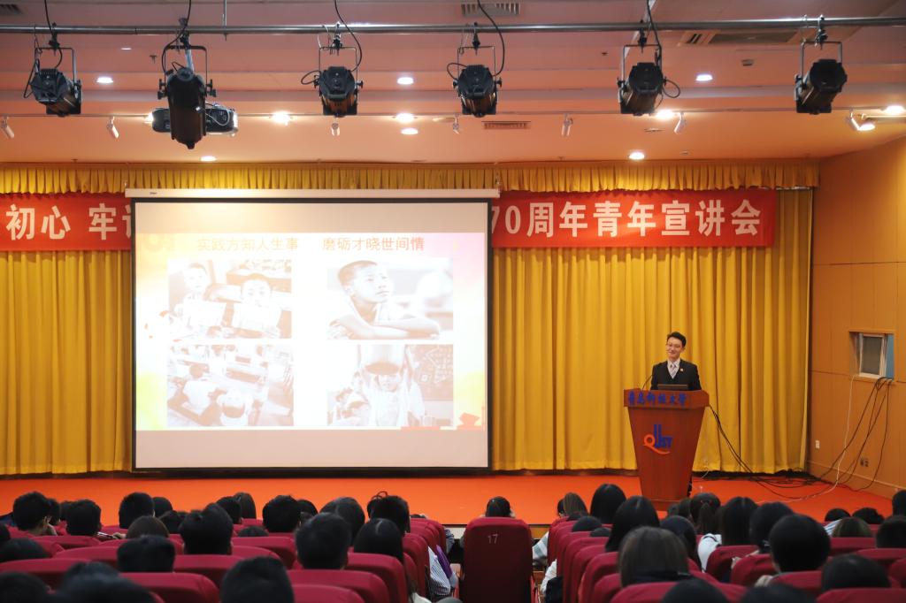 值新中国成立70周年之际,为教育引导广大青年坚守初心理想,勇担时代使命,10月22日,“不忘初心、牢记使命”庆祝新中国成立70周年青年宣讲会在崂山校区举行,为广大青年学生上了一堂爱党爱国教育公开课。