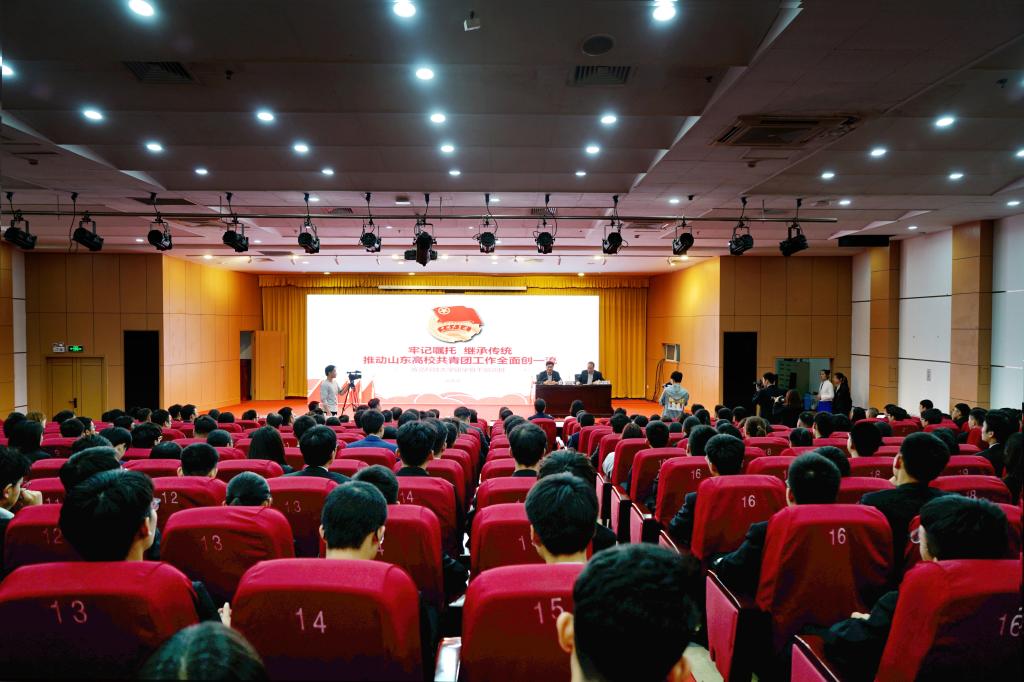 会后,刘天东在第三报告厅为三百余名团干部、学生骨干上了一堂生动的团课。他从学思践悟习近平总书记“革命理想高于天”的崇高信念、“锤炼品德修为”的价值追求、“精忠报国”的爱国情怀、“我将无我”的责任担当、“苦练本领”的精神追求、“永久奋斗”的革命传统六个方面,号召广大团干部和青年学生向习近平总书记学习,从习近平总书记的谆谆嘱托中汲取养分。随后,他详细介绍了山东共青团的发展历程,号召从山东共青团的光辉历程中体悟力量。他全面客观的分析了山东高校共青团存在的问题,告诉与会团干部和青年学生“问题怎么看”“工作怎么干”“作风怎么转”。团课中,刘天东结合自身的成长经历、感悟,和新时代共青团工作要求,为米兰官网广大团干部和青年学生上了一堂生动的思想引领课、团史教育课和工作学习课。丁林主持了团课,要求广大团干部和学生骨干聚焦主责主业,管理、教育、服务好广大青年学生,为党育人,为国育才,推动共青团工作再上新台阶。