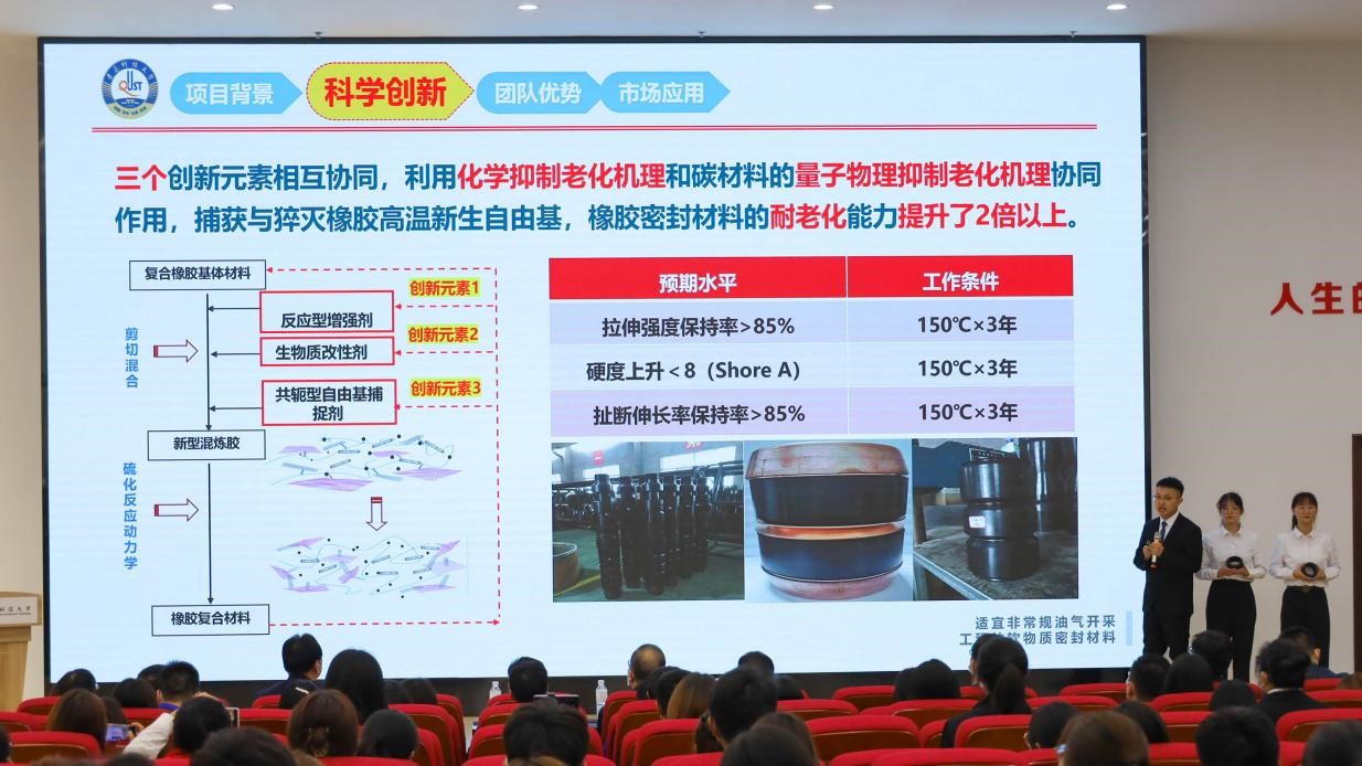 开营仪式前,学校2021年“挑战杯”大学生课外学术科技作品竞赛入围全国终审决赛的《以体育人,高校体育教学模式新探索》《适宜非常规油气开采工程的软物质密封材料》两项目进行了现场路演,现场领导老师对项目进行了逐一问辨。