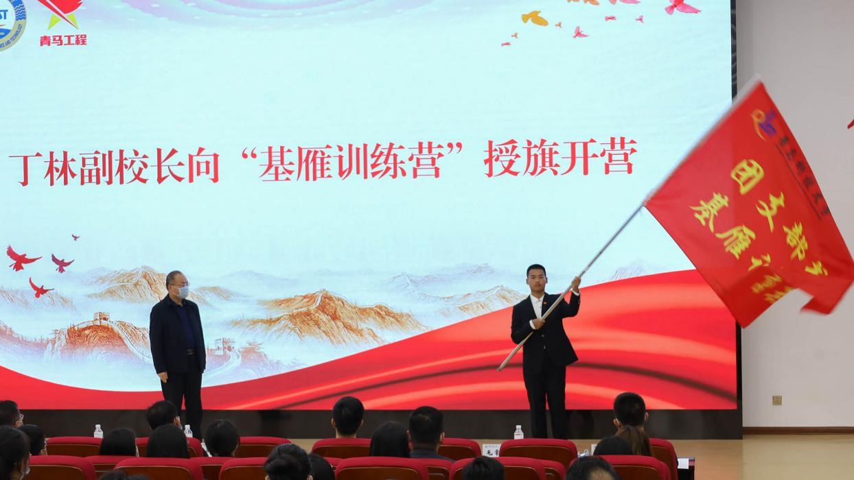 仪式上,丁林为米兰官网青马工程第二期“基雁训练营”学员代表授旗。