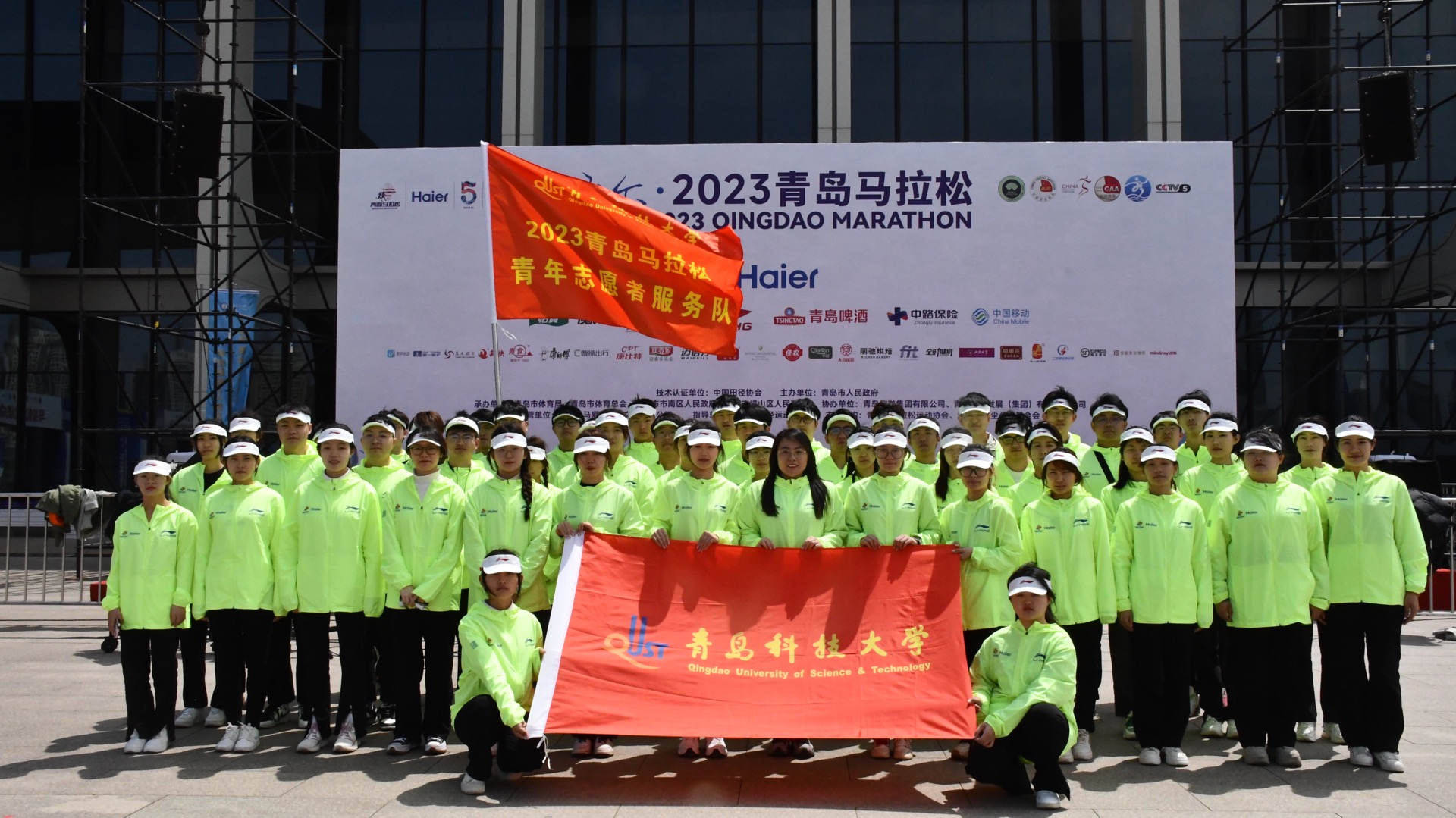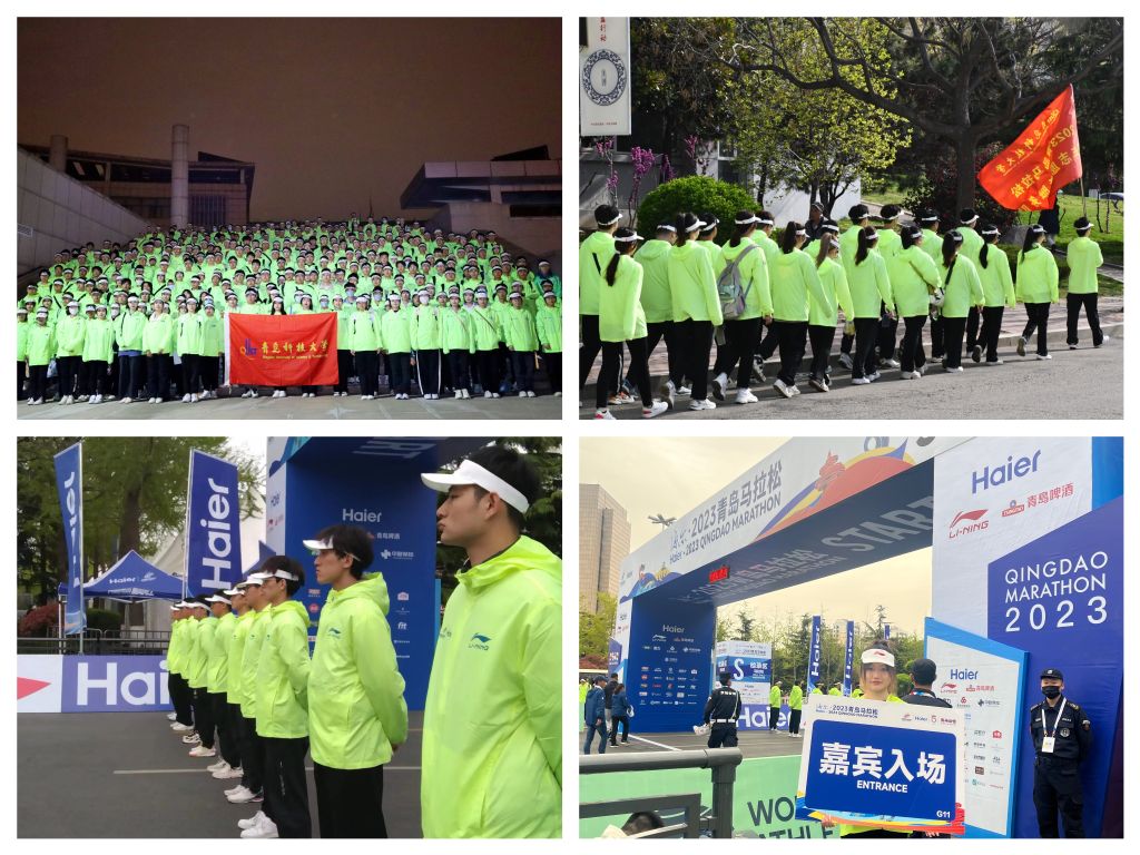 4月22日早上7:30, 2023青岛马拉松赛在五四广场北广场鸣枪起跑。学校公开招募选拔550名志愿者作为赛事服务的生力军,闪耀在赛道的各个角落,以热情洋溢的青春风貌,成为大赛的一道靓丽的风景线。