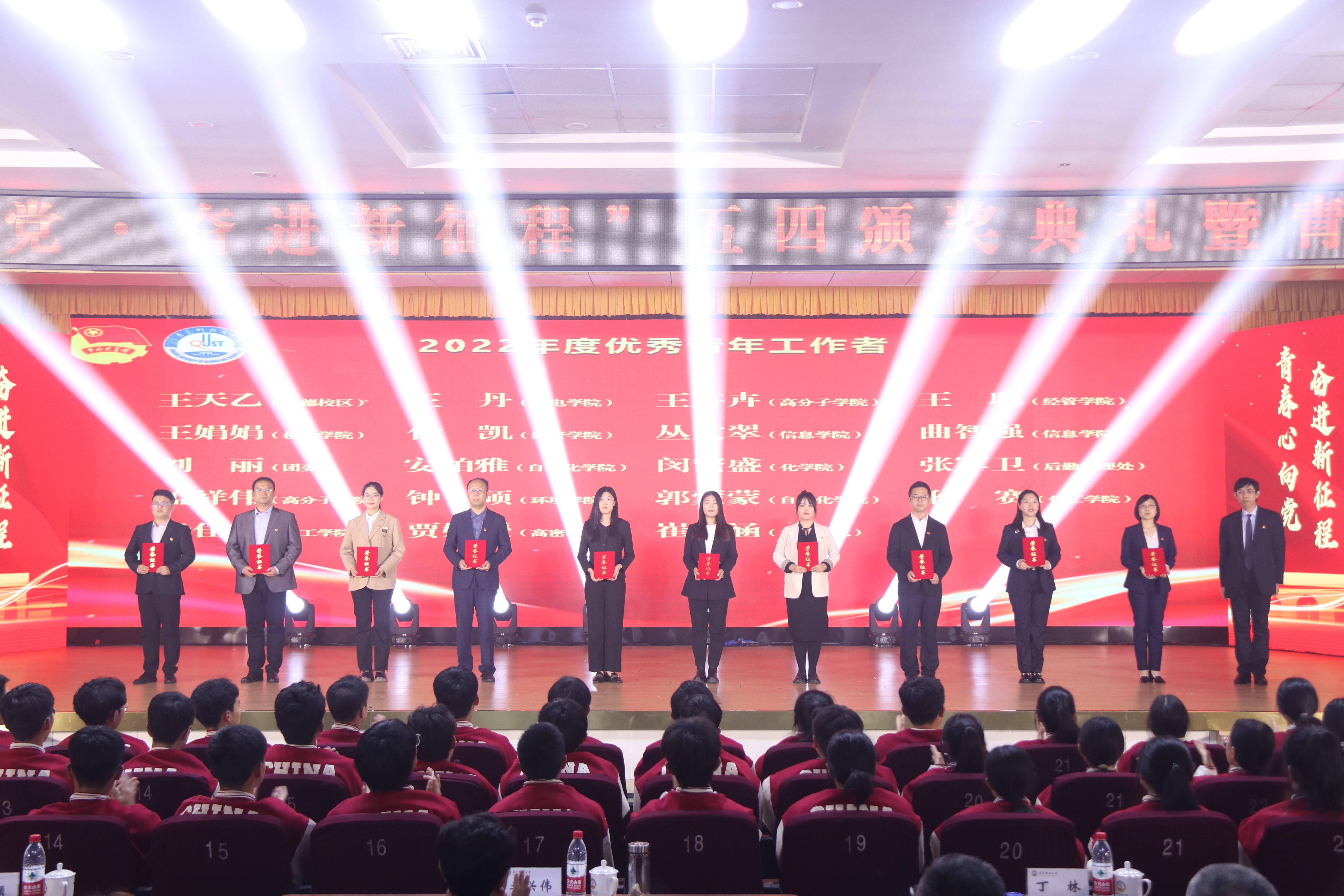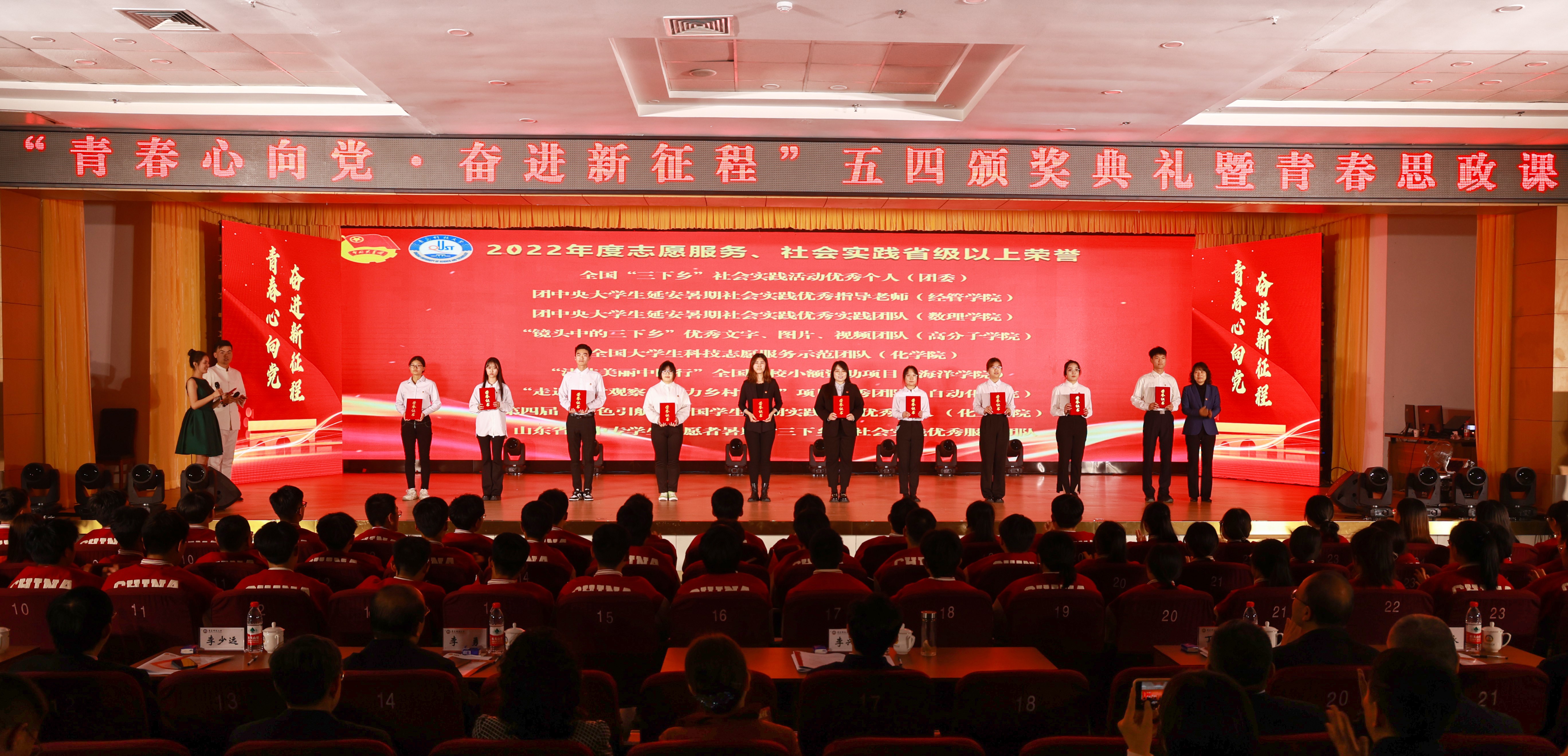 为深入学习宣传贯彻党的二十大精神和习近平总书记关于青年工作的重要思想,纪念“五四运动”104周年,5月4日,“青春心向党 奋进新征程”五四颁奖典礼暨青春思政课在崂山校区第二报告厅举行。学校党政领导班子成员李兴伟、李勇、丁林、李少远、刘明永、张洪坤、朱敬义、秦姣出席颁奖典礼为先进集体和个人颁奖,并现场观摩指导本次“青春思政课”。