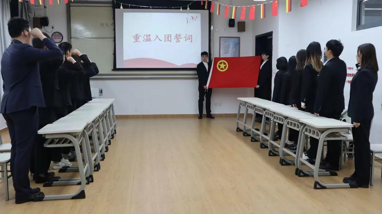 中德校区团委开展“重温入团誓词,牢记青春使命”五四青年节活动。组织团员青年重温入团誓词,团员青年们高举右拳,在鲜艳的团旗下庄严宣誓,铿锵有力的誓词回荡在每一位团员青年的心中,坚定的目光和铮铮的誓言展现出科大青年积极向上、朝气蓬勃的青春风采。
