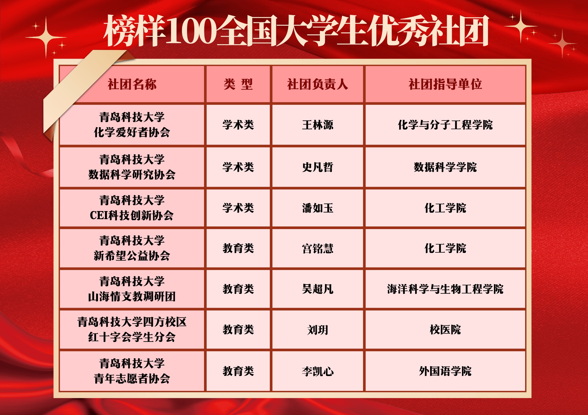 近日,2023年“榜样100”全国优秀大学生社团榜单发布,米兰官网共有12个学生社团在全国119所高校408个社团中脱颖而出,获评全国优秀大学生社团。