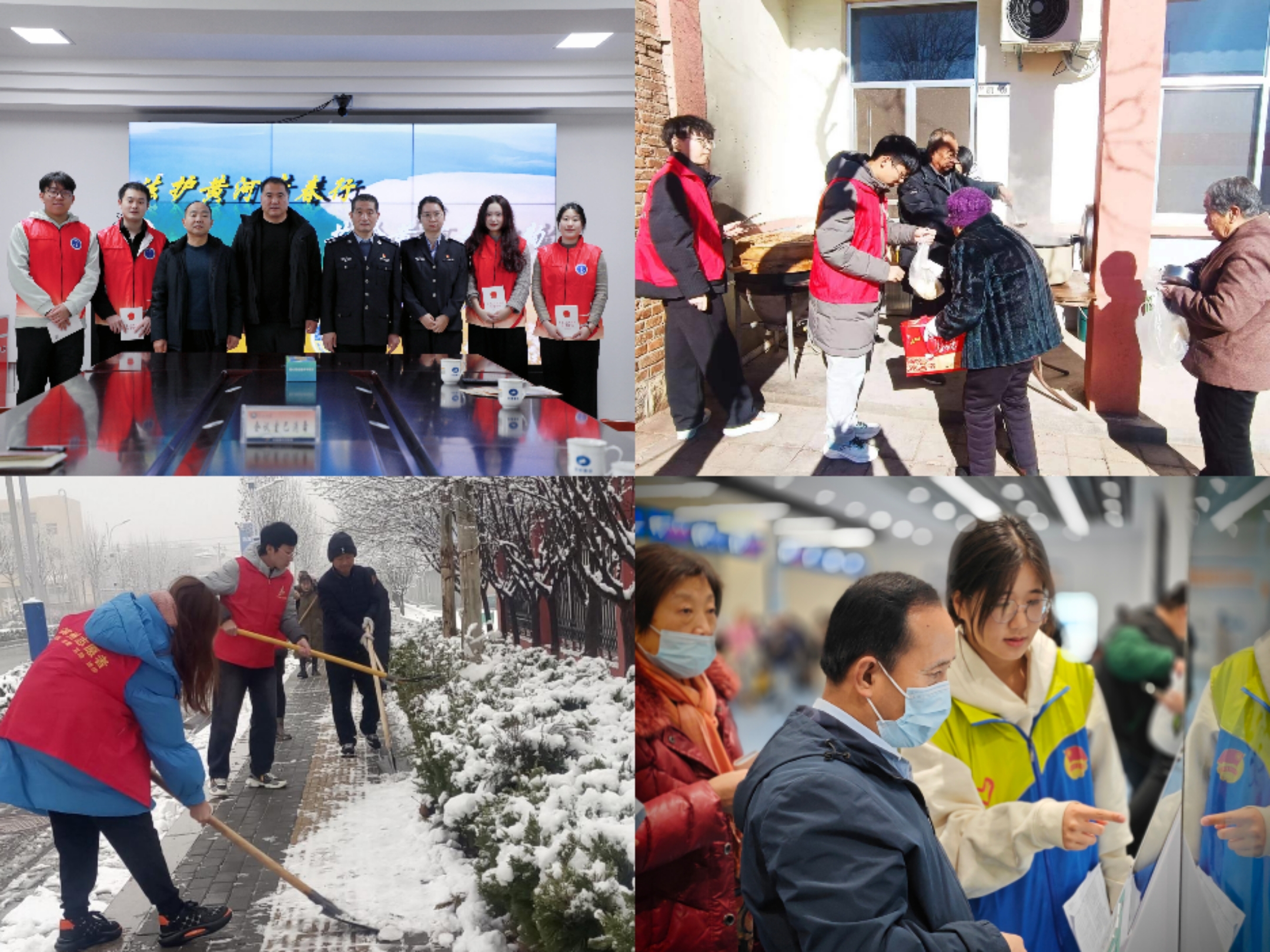 法学院团委组建“法护黄河青春行,共绘黄河文化韵”生态文明省级实践团队,通过“调研+宣传+实践”相结合的模式,赴山东省东营市实地调研黄河口湿地生态区,为地方政府和企业建言献策;设立普法摊位,为居民提供法律咨询和宣传服务;走进社区开展主题宣讲,普及法律知识,以行动诠释《黄河保护法》,服务总时长108小时,服务人数破1000人。海洋学院团委鼓励学生在临汾市,青岛市、潍坊市等13地乡村进行服务建设类实践,用扫雪除冰志愿服务、防诈骗宣传、普法宣传活动等实际行动为群众安全保驾护航,为社会治理和乡村振兴贡献力量。信息学院团委深入推进“暖冬行动”,引导学子在泰安市、淄博市、济宁市、滨州市多地村镇开展志愿服务,以“爱心义工”等形式为居民发放新年礼包、清扫院落,在浓浓年味中传递温情。数理学院团委引导青年学生向家乡社区年前年后“双报到”,组织返乡大学生充分发挥自身专业优势、技术特长,立足所在村和社区,参与扶贫济困、扶弱助残、敬老爱老、生态环保、义务支教、课业辅导、服务群众等工作。环境学院团委鼓励广大学子走进社区,走进群众,在山东省济宁市、青岛市的19个区县的服务基层活动中,通过发放环保知识单页、设置咨询服务台、开展环保科普等方式,把社会实践同自身专业紧密结合,将“创新发展、开放发展、协调发展”的理念深入群众内心。