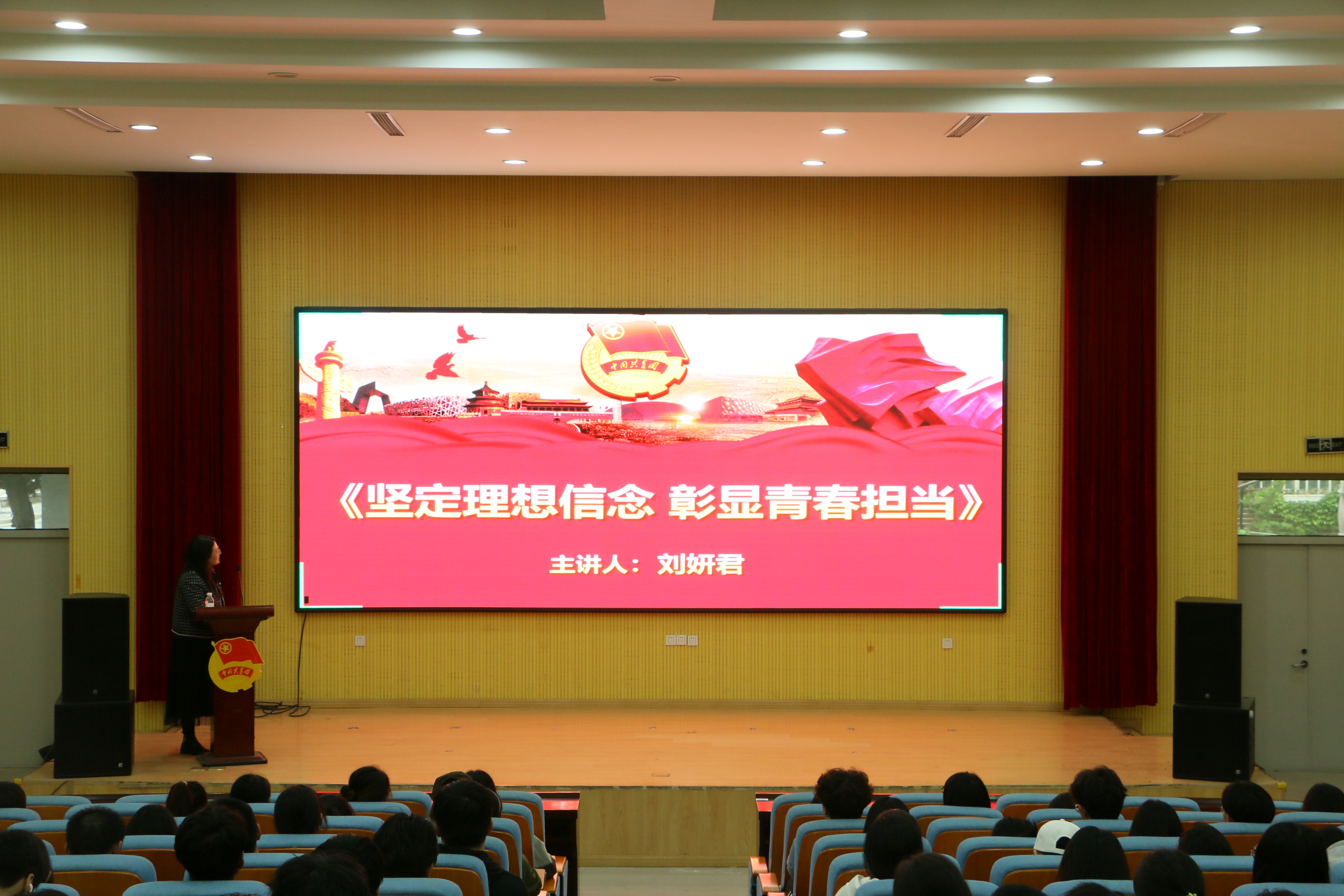 刘妍君老师以《坚定理想信念 彰显青春担当》为题,结合自身工作从理想信念及青年担当两个方面进行深入浅出的讲解,启迪新时代青年应始终坚定理想信念,在中国式现代化建设中挺膺担当,为成为一名合格的共青团员打下坚实的基础,争做担当民族复兴大任的时代新人。