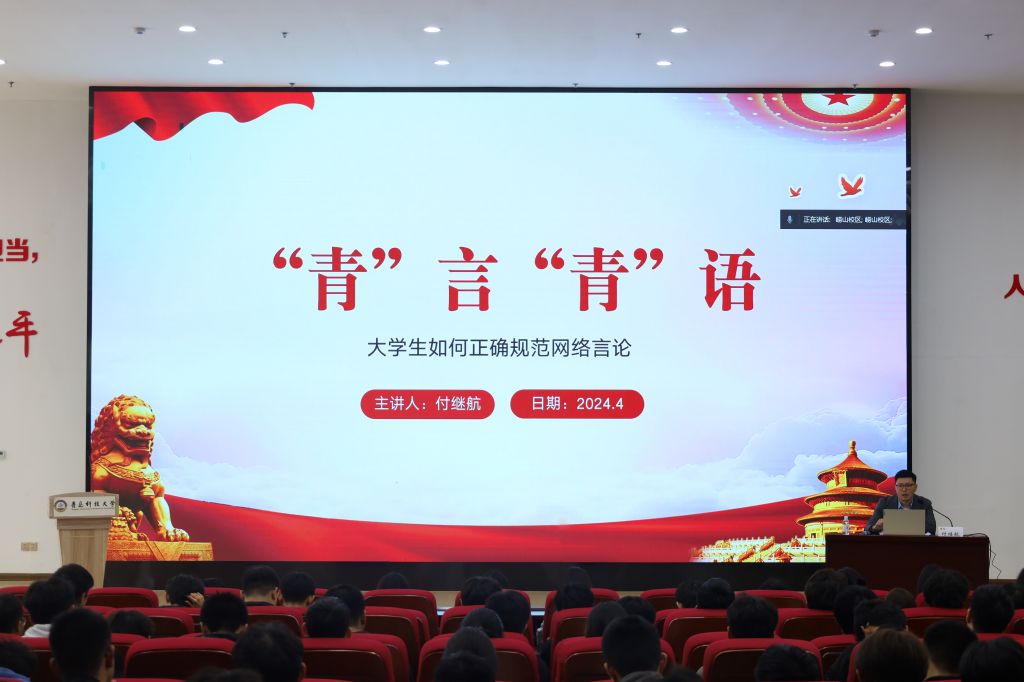 付继航老师以《“青言青语”-大学生如何正确规范网络言论》为题,从青年网络发声特点、网络正能量传播、网络发声案例三个维度进行详细讲解,传递“以理性的态度参与网络互动”的思想,激励青年学生要成长为保持冷静、理性思考、传播正能量的新时代网络青年,早日成为一名优秀的共青团员。