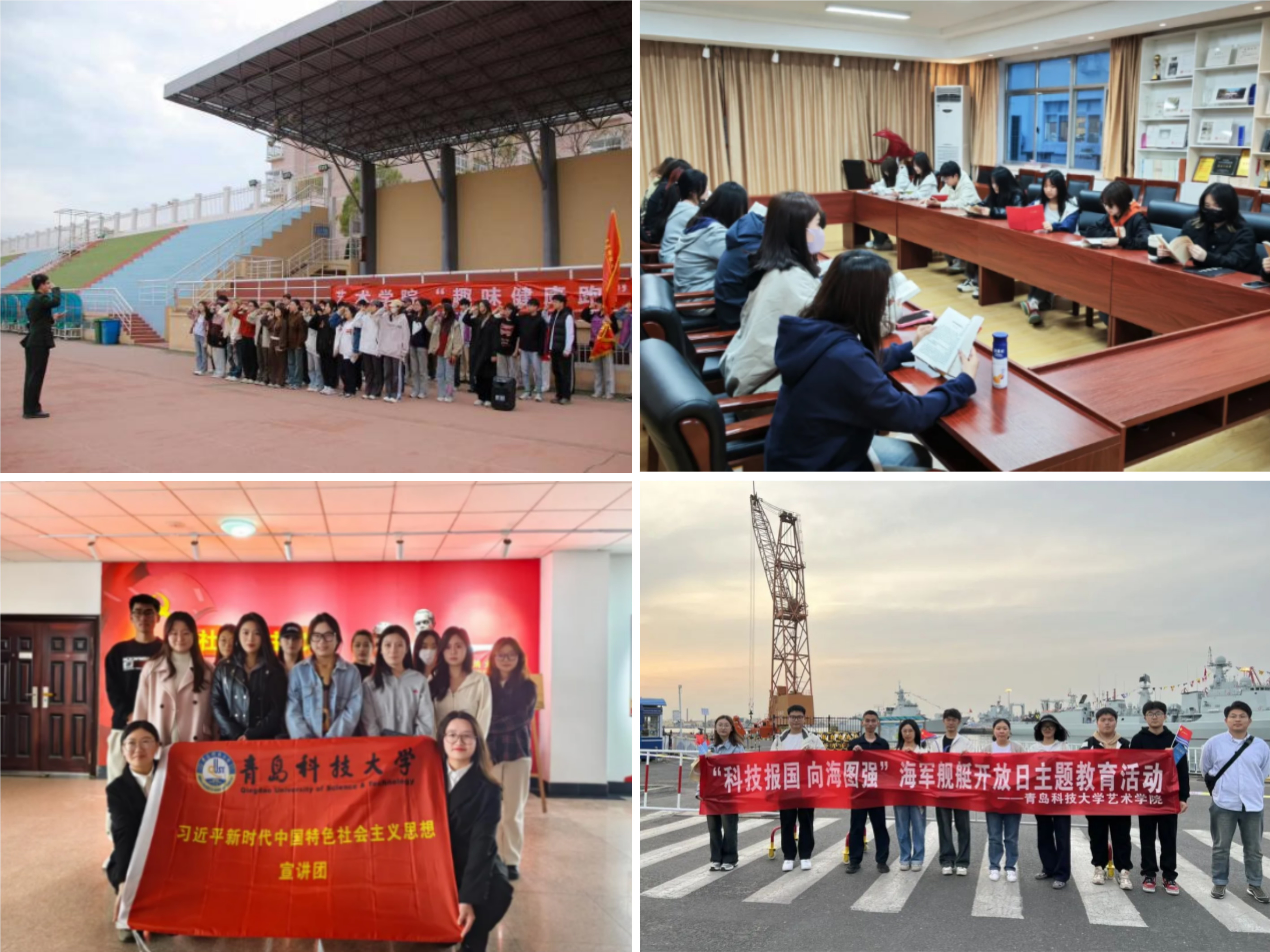艺术学院团委开展“科技报国 向海图强”主题团日活动,增强青年学生国防意识;举办“求思得”学术论坛,帮助青年学生增强就业创业意识;组织青年学生参观社会主义五百年展板,深刻领悟习近平新时代中国特色社会主义思想;举办“参军入伍展担当,五四青春续辉煌”主题演讲、“ 书香伴青春,奋进新征程 ”读书活动以及阳光体育活动,充分展现艺术学院青年学生昂扬向上、积极进取的精神风貌。