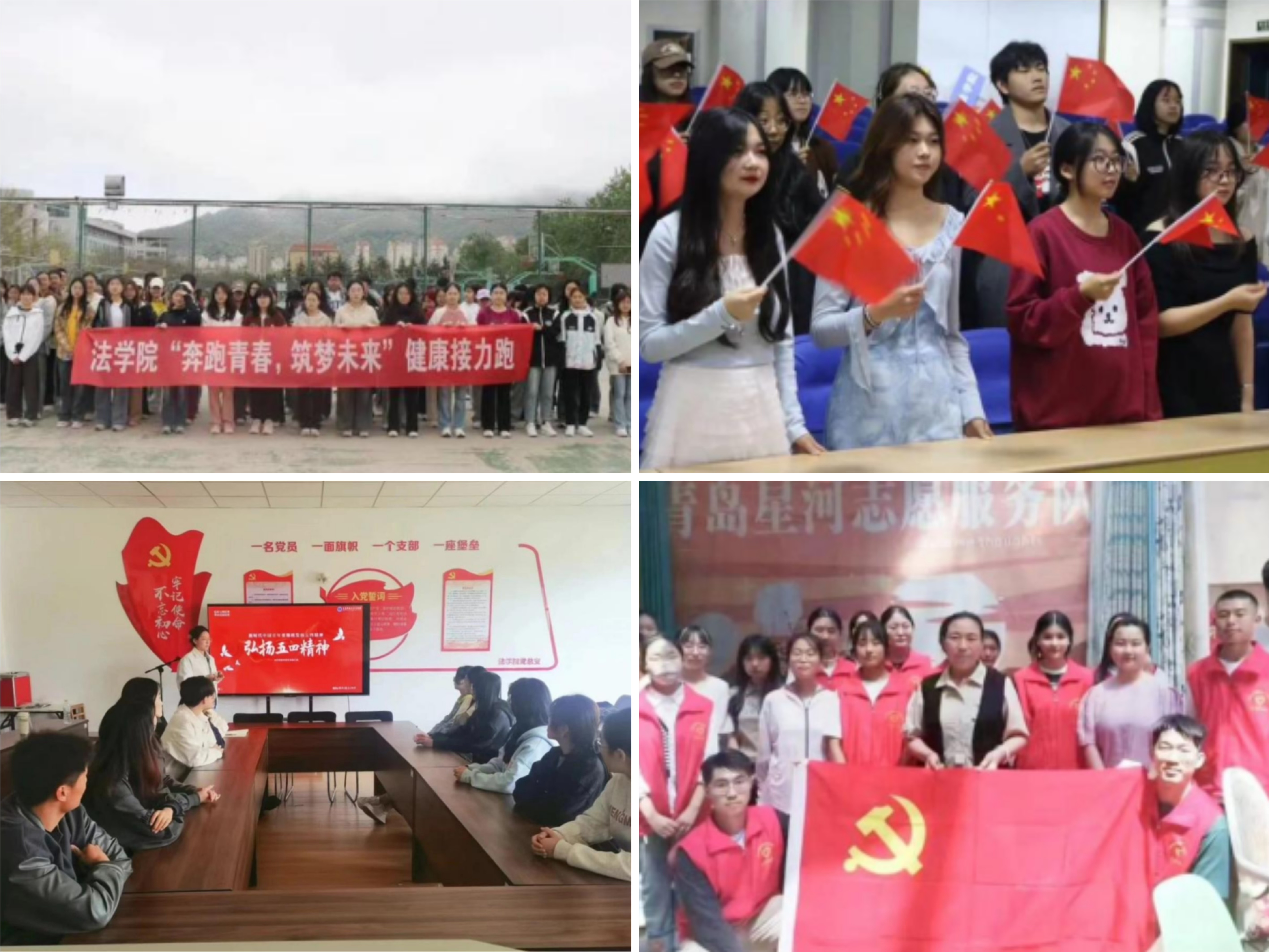 法学院团委通过理论学习、文化活动、体育竞赛等形式,开展了一系列内涵丰富、形式多样的主题活动,通过常青藤理论学习小组带领成员沉浸式学习五四精神,开展《中国青年运动一百年》诵读经典活动,帮助青年学生了解中国青年运动历史,举办“滚烫五四,热辣青春”五四歌会,青年学生用歌声传递热情、用歌声感受青春,举办“奔跑青春,筑梦未来”健康接力跑活动,用昂扬的斗志展现坚定的信念与青春的活力。
