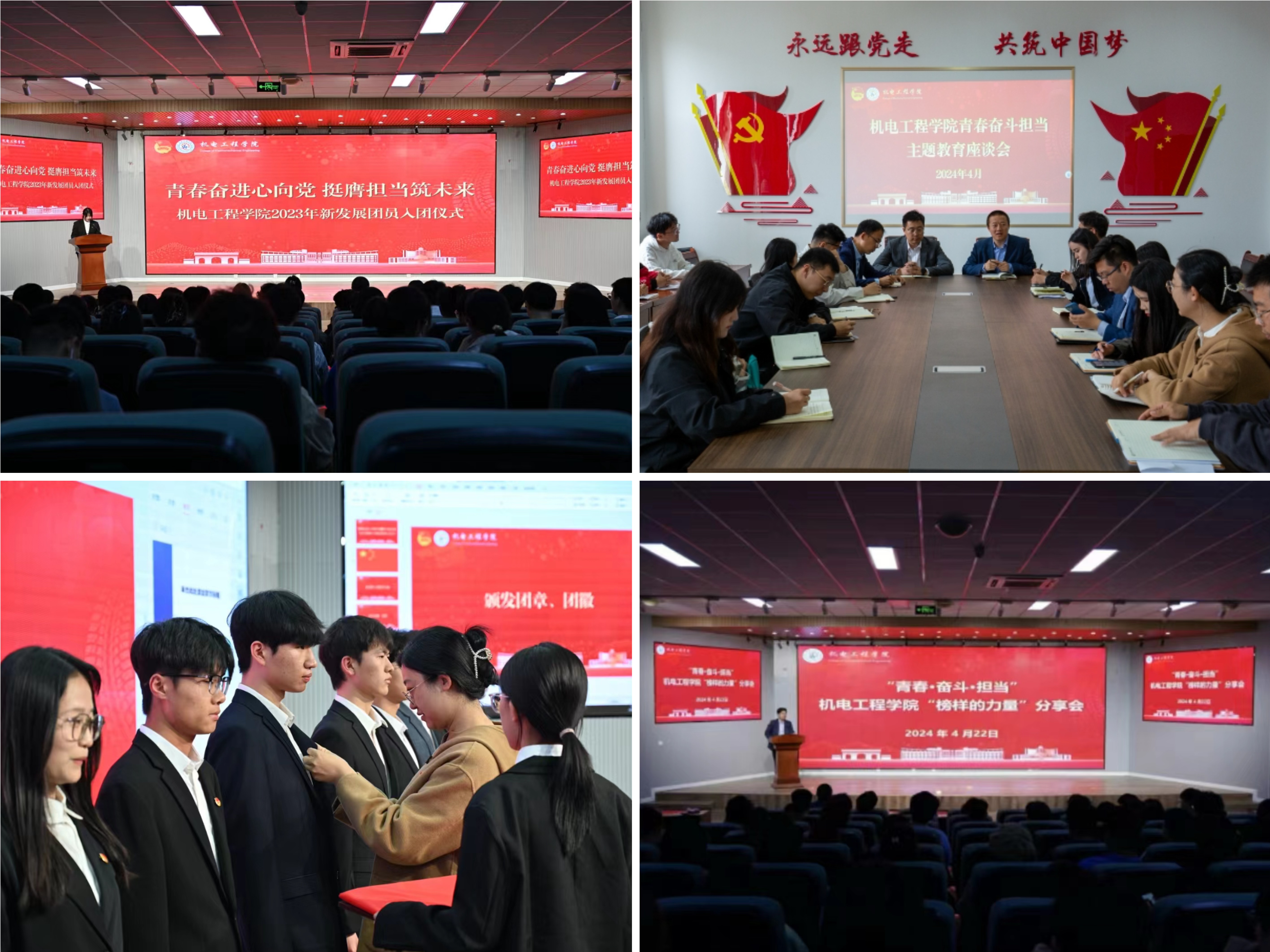 机电学院团委开展“青春·奋斗·担当”主题教育座谈会,引导学生骨干坚定理想信念、培育高尚品格;举办“青春奋进心向党,挺膺担当筑未来”2023年新发展团员入团仪式,激励广大团员青年在中国式现代化建设的新征程上挺膺担当;举办榜样的力量分享会,邀请青年典型分享成长经历,激发广大同学学习热情;举办红色书籍阅读分享活动,引导青年学生真切感受中国共产党人的家国情怀,在红色经典中汲取奋进力量。