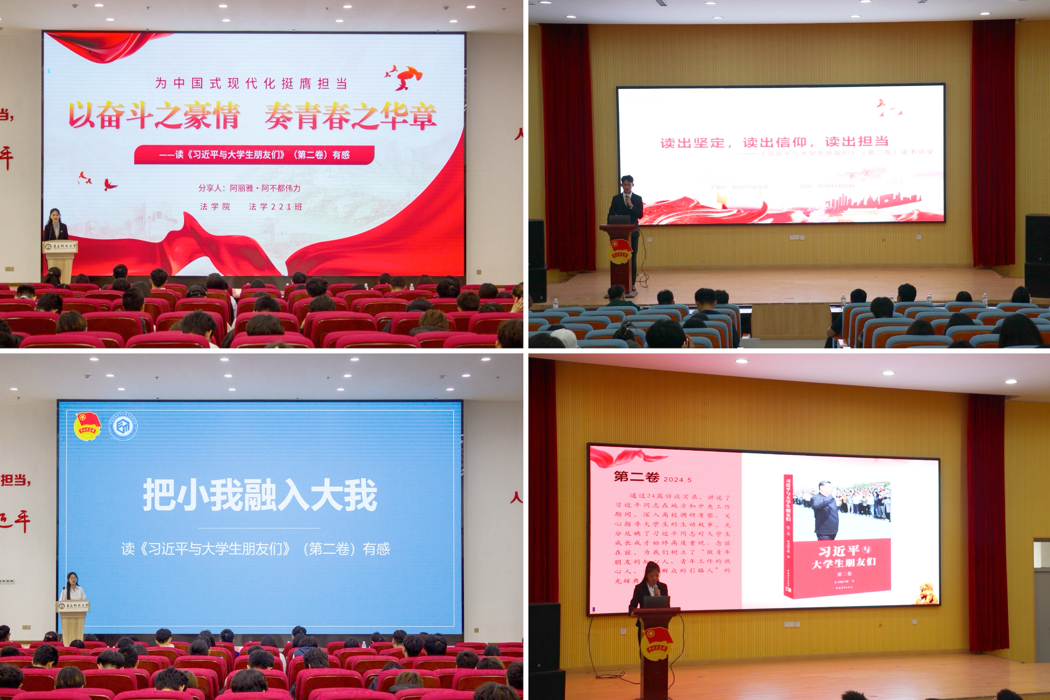 为巩固拓展学习贯彻习近平新时代中国特色社会主义思想主题教育成果,贯彻习近平文化思想和习近平总书记关于青年工作的重要思想,引导广大青年学生爱读书、读好书、善读书,学理论、读经典、促实干,5月25日,学校“个十百千万”读书之星评选活动暨“为中国式现代化挺膺担当——青春年少读好书”读书分享会在崂山校区北区团学报告厅、四方校区尚舜报告厅举办。校团委相关负责人,校院两级学生会、研究生会指导教师,校院两级学生会、研究生会主席团成员及500余名青年学生代表参加活动。