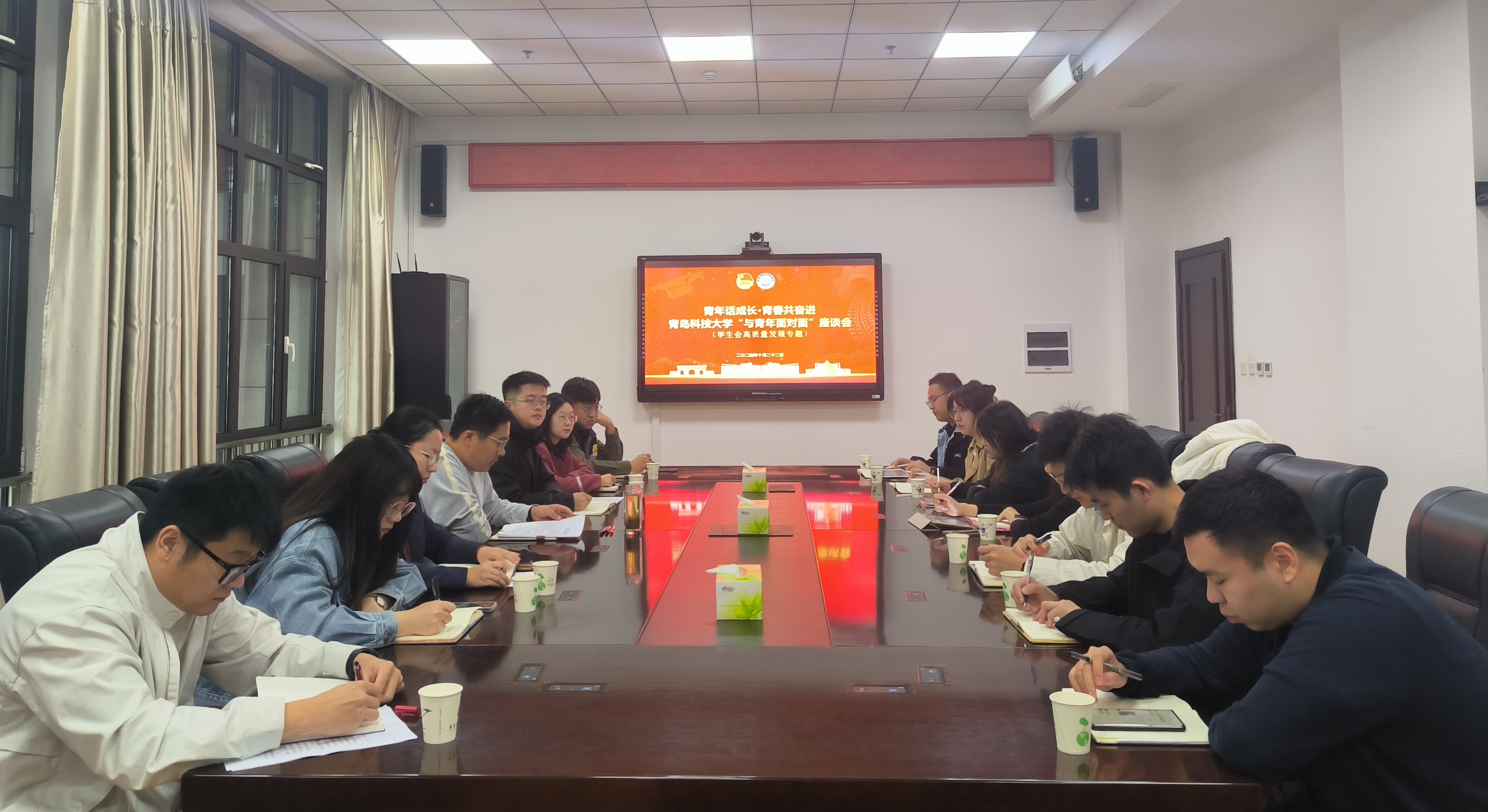 10 月 22 日,学校“与青年面对面”系列活动之“学生会高质量发展”专题座谈会在崂山校区综合服务楼 2015 会议室举行,校团委相关负责人、校院两级学生会(研究生会)指导老师代表及青年学生代表参加会议。