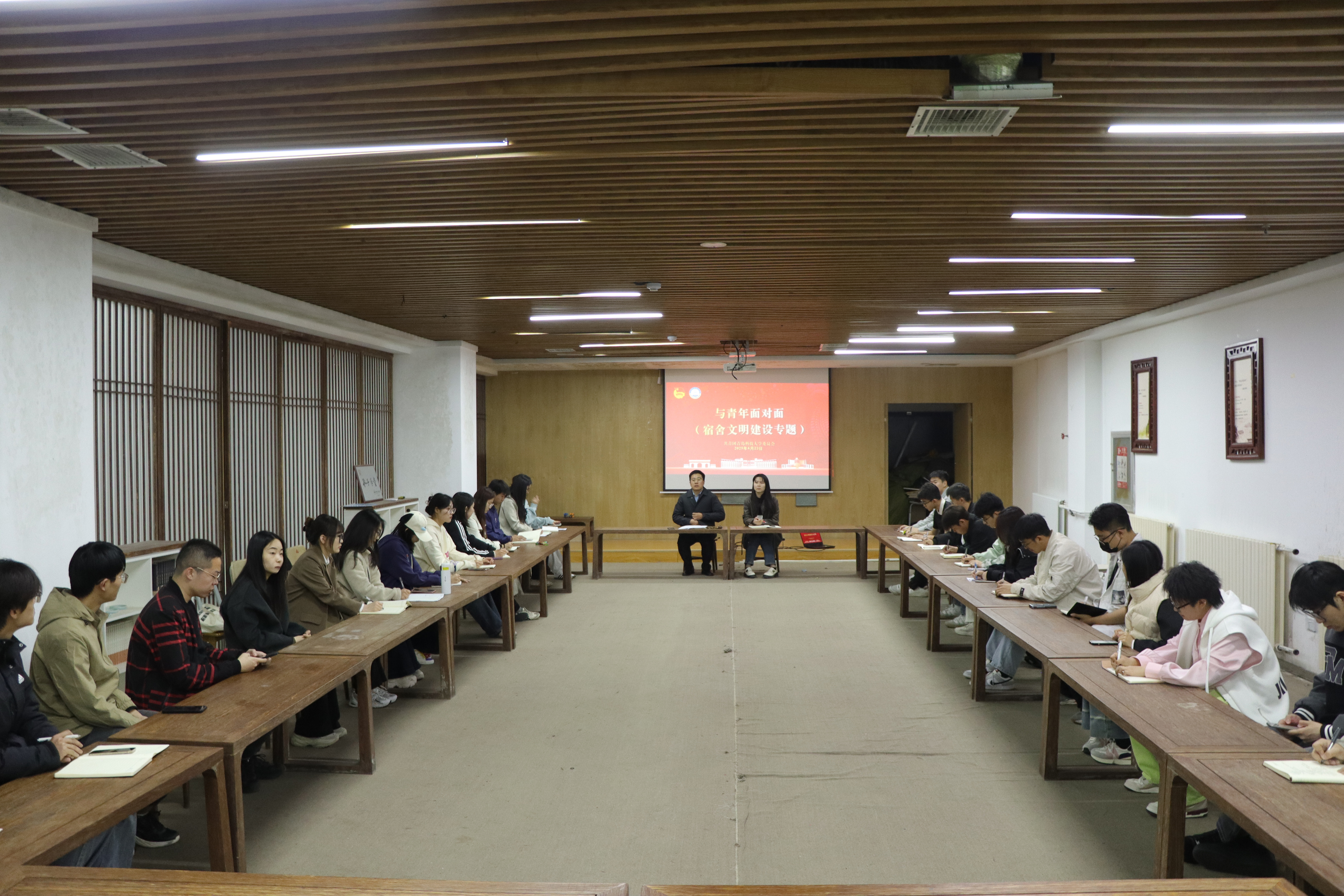 会上,与会人员围绕宿舍文化赋能青年学生发展进行热烈讨论,一致认为宿舍是学校落实育人举措的重要阵地,宿舍文明建设是校园生活的重要组成部分,要坚持问题导向、过程导向、效果导向,强化协同联动机制,共同营造积极向上的宿舍文化,助力青年学生成长成才。