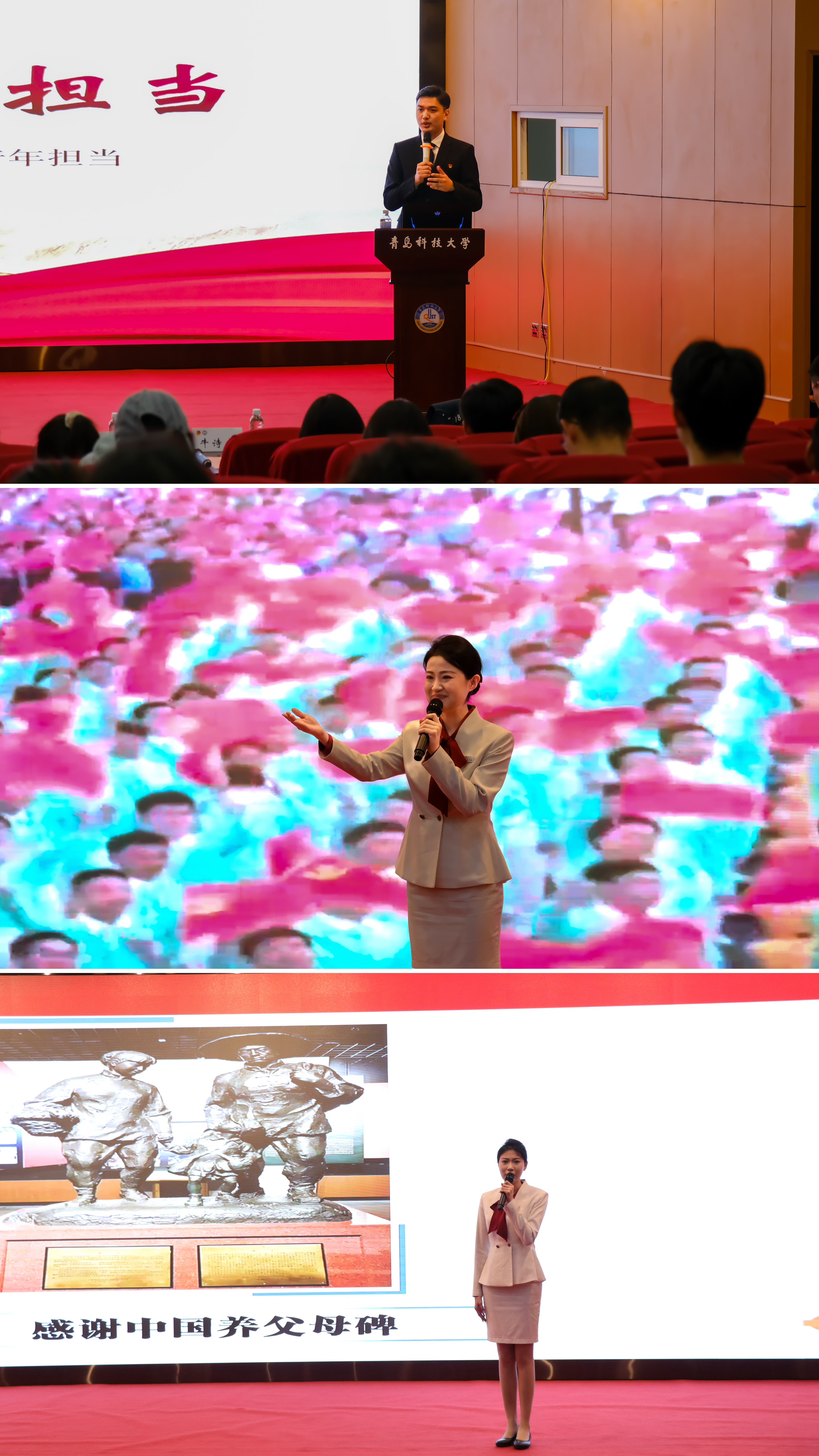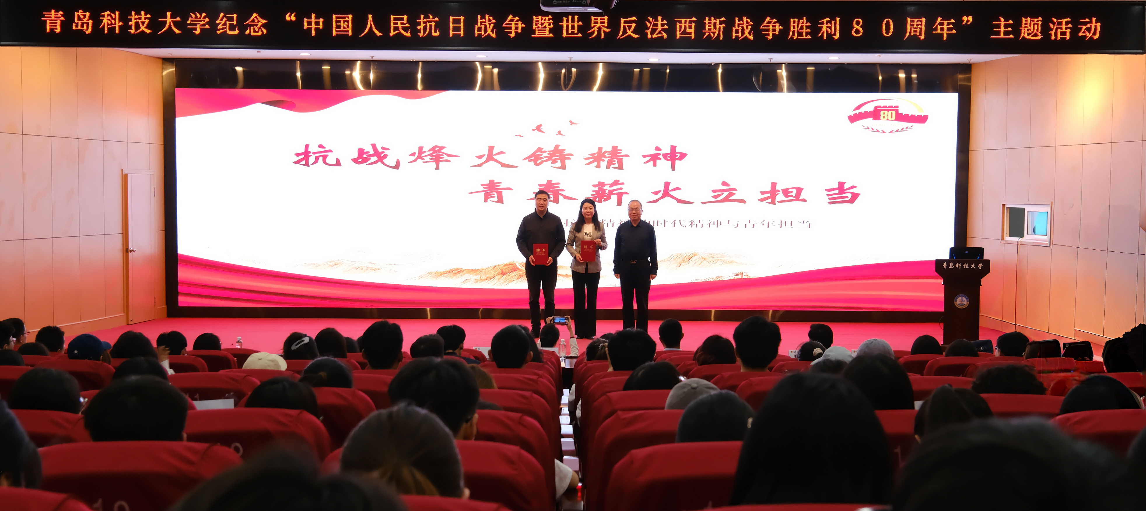 为纪念中国人民抗日战争暨世界反法西斯战争胜利80周年,激发青年学生爱国情怀,5月21日,学校纪念中国人民抗日战争暨世界反法西斯战争胜利80周年红色精神主题宣讲活动在崂山校区“英科”报告厅举行。学校党委常委、副校长丁林,沈阳“九·一八”历史博物馆副馆长魏鹏、社教部主任石任华出席本次活动。学校相关部门负责人、院级团组织负责人、青马工程学员、青年师生代表参加活动。