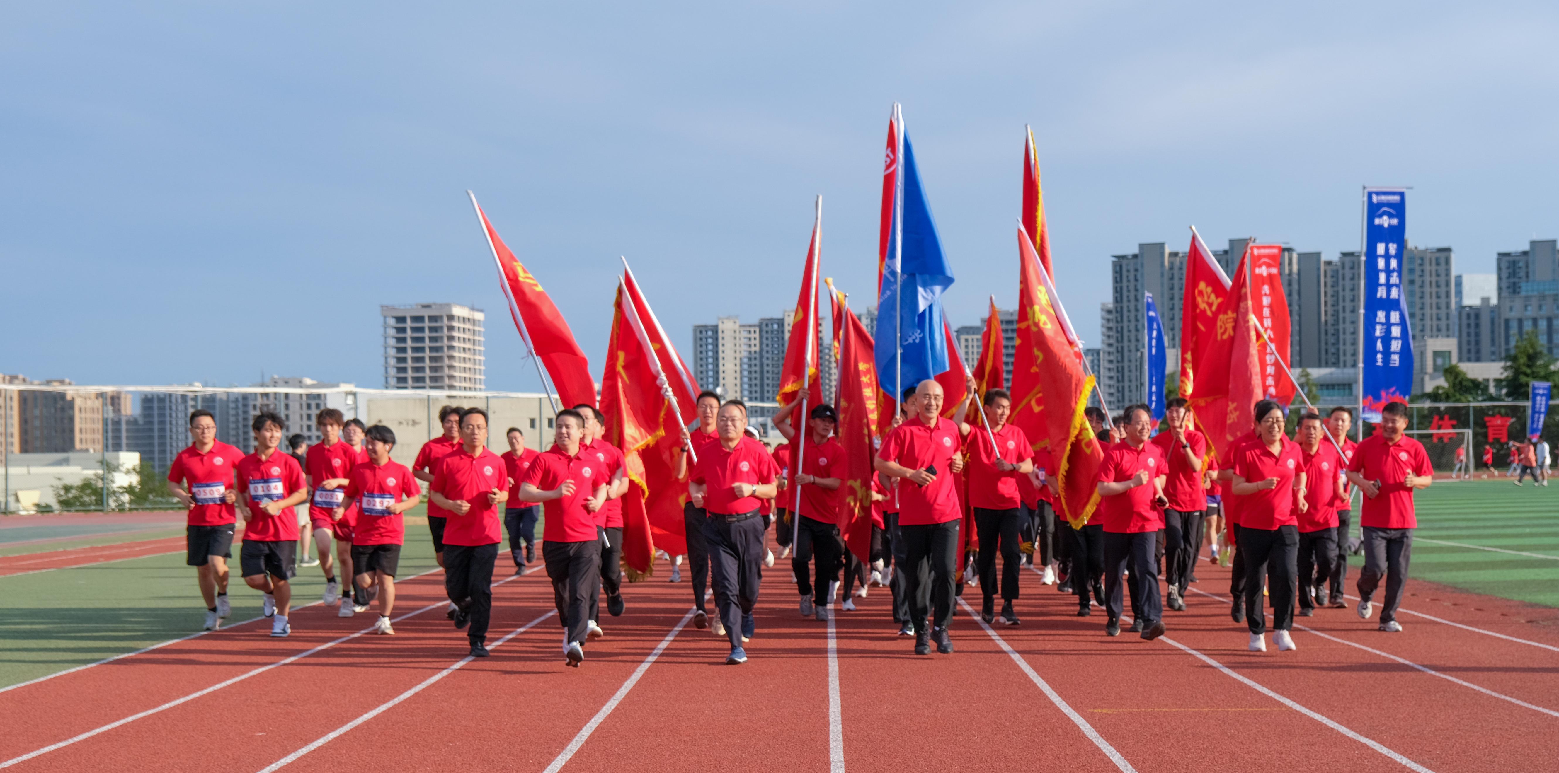 随着发令枪响,毕业生们冲出起跑线,赛道顿时变成蓝色、红色交织的河流。红蓝辉映的道旗迎风招展,“拥抱体育 出彩人生 畅享未来 无限精彩”“在青春的赛道上奋力奔跑 争取跑出当代青年的最好成绩”等充满期许的横幅高悬四周,是“奋斗青春”在科大校园最鲜活的注脚。毕业生们在师长和学弟学妹的陪伴下再览校园风景、回首校园时光,立志在青春的赛道上奋力奔跑,以实际行动表达对母校的深情与热爱,坚定“青春为中国式现代化挺膺担当”的理想信念。