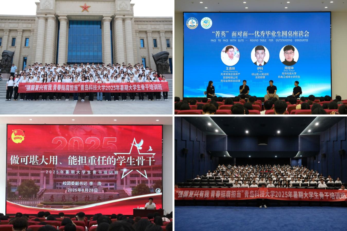 实践赋能部分,全体学员赴青岛海军博物馆开展沉浸式爱国主义教育,通过深入了解人民海军发展历程,进一步强化青年学生骨干投身强国复兴伟业的决心与担当。同时,培训班还通过组织“菁英”面对面圆桌座谈会、观看爱国影片《南京照相馆》、开展“戮力同心,携手奋进,建设一流团队”破冰活动等环节,有效激发学员的爱国情怀与历史使命感,形成了价值引领、情感共鸣与能力提升的育人闭环。