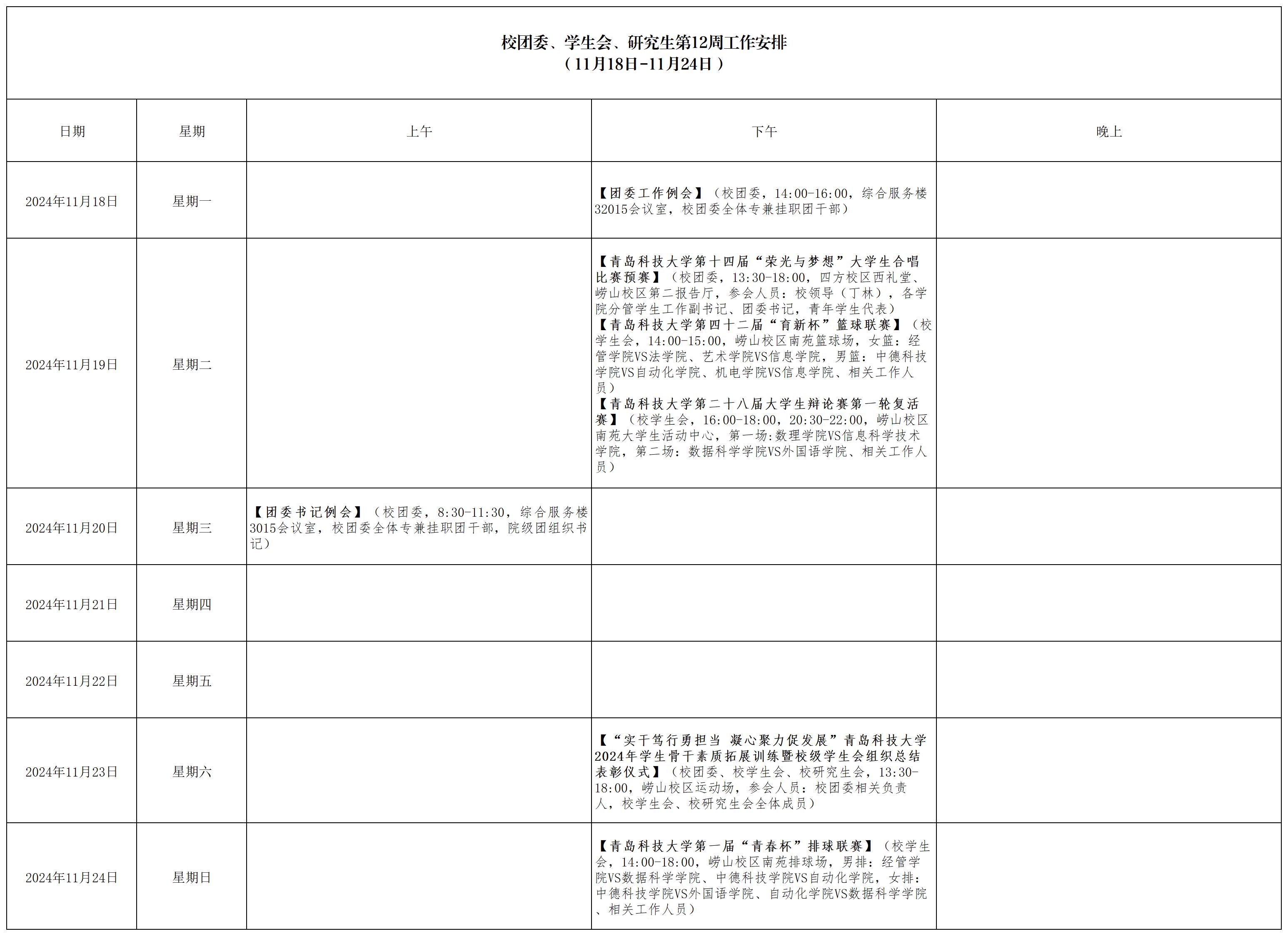 校团委、学生会、研究生会第12周工作安排