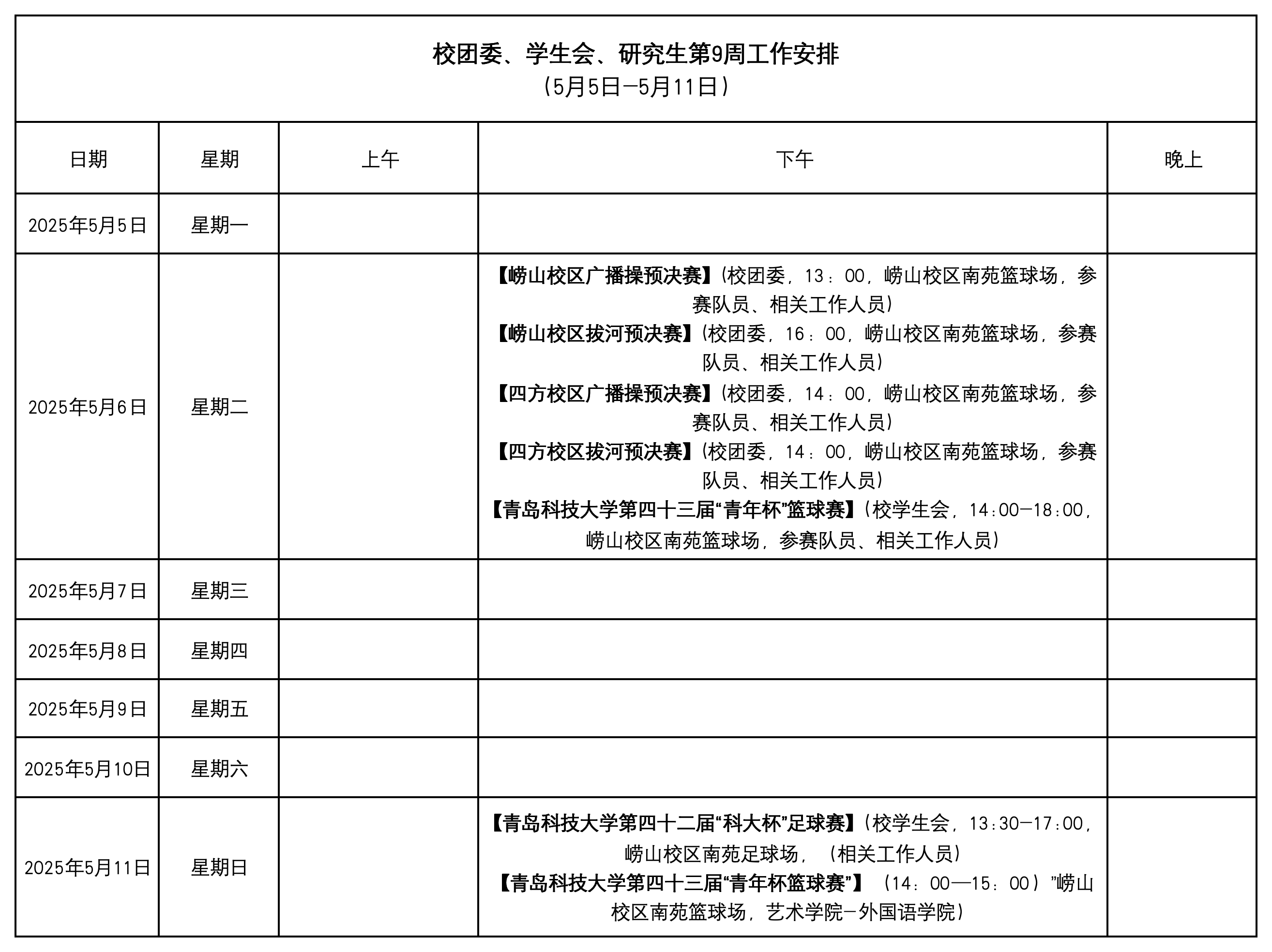校团委、学生会、研究生第9周工作安排