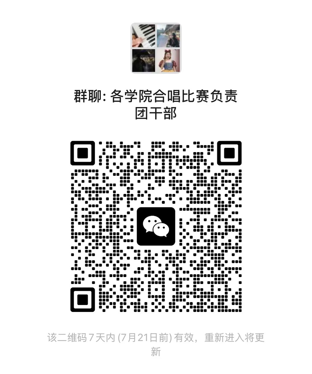 1.请各学院安排负责文艺工作的团干部于7月19日前扫描二维码入群,并备注好学院。