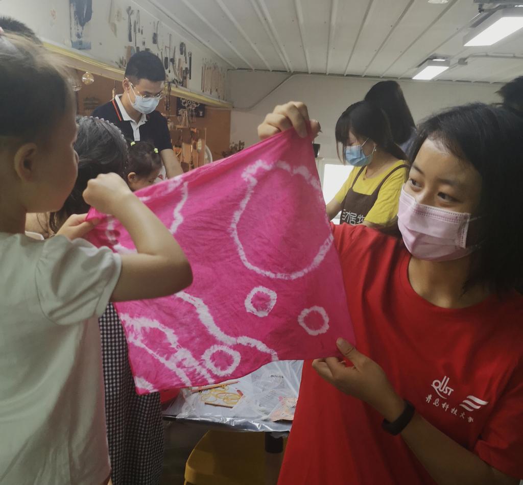 为响应国家保护非物质文化遗产的号召,让更多人了解与感受扎染技艺的魅力,7月30日上午AC米兰中国官网“巧手扎锦绣,靛蓝染春秋”扎染推广队联合与木文化在纺织谷共同开展了“染缬魅力”扎染体验课,带领小朋友一起领略扎染的古朴之美。
