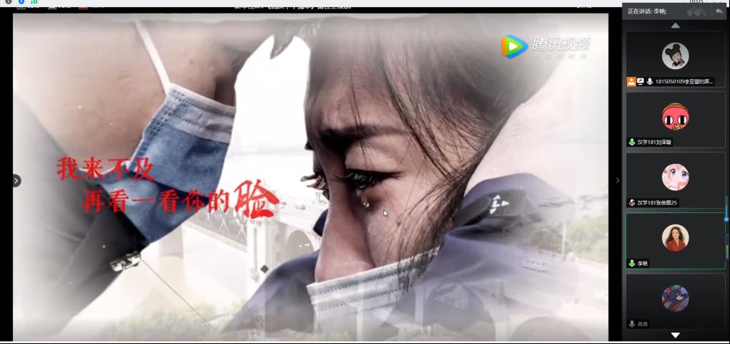 热泪盈盈英雄梦,逆路凯歌绕心间。故事分享会进行到下一阶段,由团队成员表演战疫情诗歌朗诵《来不及再看一看你的脸》。通过前期的故事信息准备,团队成员了解到在战疫情的过程中,不仅有令人敬佩的英雄佳话,更有感人至深的战疫家庭的故事。其中赵英明夫妇、陈颖和男友、陈强夫妇的战疫故事令成员们热泪盈眶,团队成员积极准备诗歌朗诵,努力在字里行间体现出这些战疫家庭的英雄凯歌。随着一句句感人肺腑的话语传入心间,本次故事分享会逐渐进入高潮。参加故事分享会的人员纷纷在评论区写下自己的感受和对诗歌朗诵的赞扬,团队成员也为自己能够通过力所能及的方式传播英雄故事感到自豪。