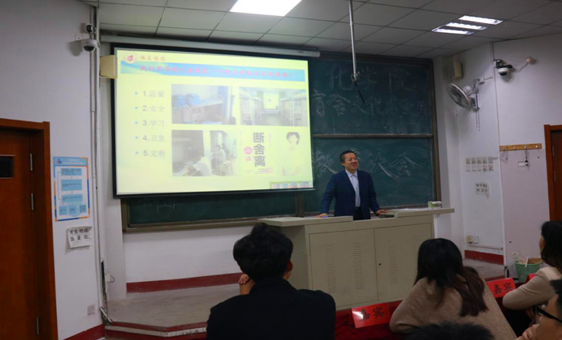 宿舍对于一个高效健康的大学生活来讲至关重要,化学院希望通过宿舍文化月开幕式有效地宣传文化节,让我院同学们懂得何为宿舍文化月,为什么要建立良好的宿舍文化以及怎样去建设宿舍文化,从而在我院里建立起一种和谐、团结、友爱、文明、健康的宿舍文化。在此次动员大会中,各位寝室的寝室长积极参与,现场氛围良好。无论是哪位老师讲话,都能看到同学们认真倾听的身影,表现了舍长们对于这份工作的重视。舍长之职源于舍友的信任,在场同学深知这一点,纷纷表示一定会努力建设好宿舍文化。