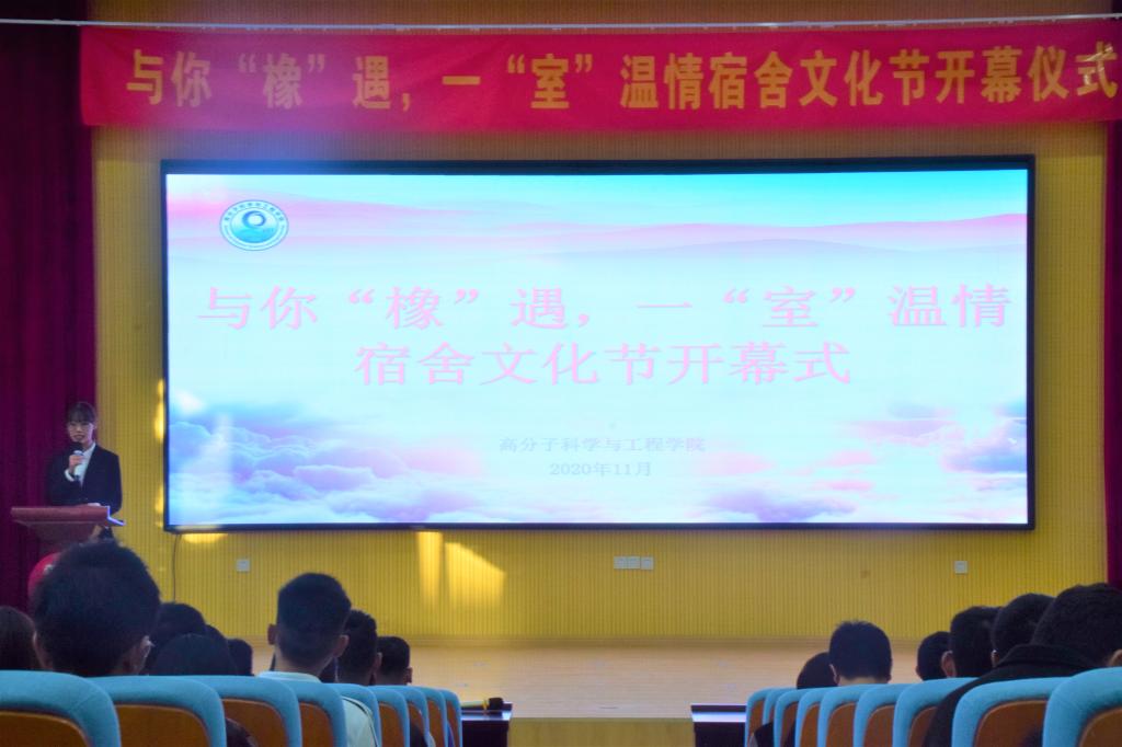 为加强学生宿舍文化建设,进一步强化宿舍育人功能,丰富学生课余文化生活,11月3日下午,高分子学院“与你‘橡’遇,一‘室’温情”宿舍文化节开幕仪式在四方校区尚舜报告厅举行。高分子学院团委老师崔伟、邢瑛出席了本次活动。学生会主要负责人及各班学生代表共200余人参会。