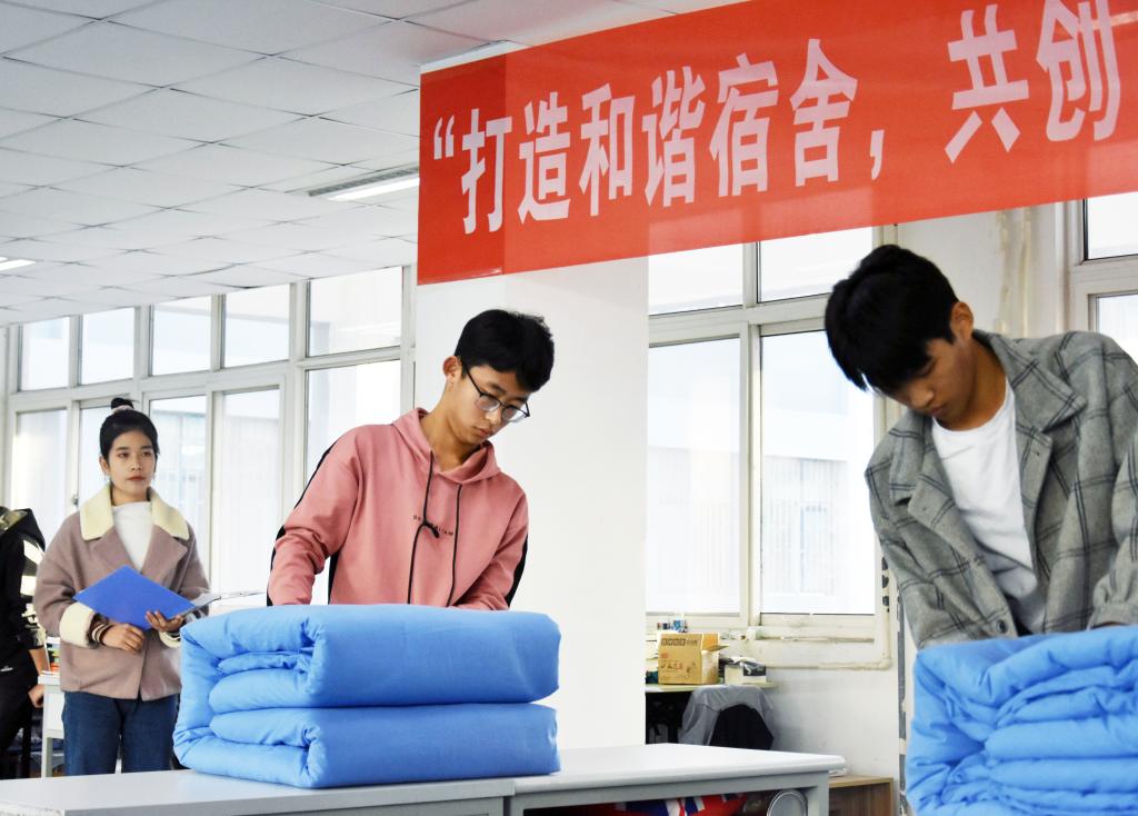 开幕式结束后,开展了宿舍文化节的第一项活动——叠军被比赛,比赛伊始,主持人介绍比赛规则,将参赛选手分为八组,每组三到四人不等,参赛选手们连贯有序的动作与整齐方正的被子得到了观众的一致好评。最后,通过评委打分,共有15位同学分获一、二、三等奖。