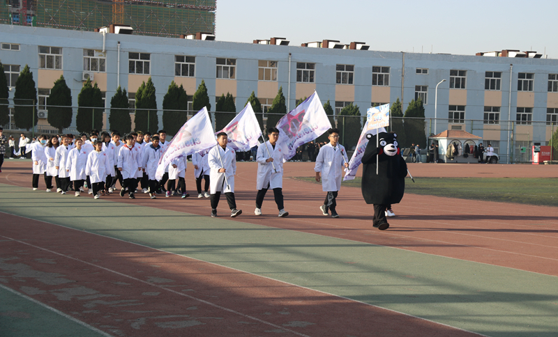 开幕式在欢乐祥和的乐曲中拉开帷幕。数十个班级方阵迈着整齐的步伐,依次经过主席台,接受领导检阅。
