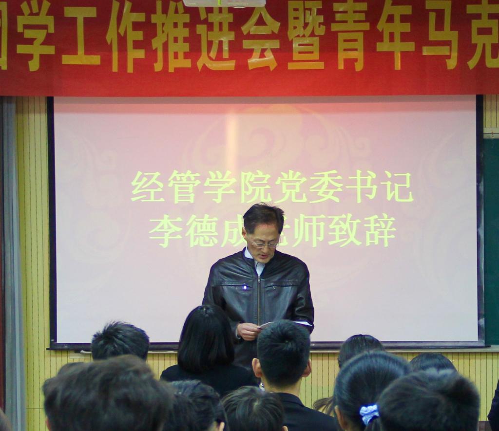 为全面贯彻落实习近平总书记关于青年工作的重要讲话精神,深化共青团思想引领与价值引导的组织影响力,根据校团委关于深入实施“青年马克思主义者培养工程”的有关要求,11月10日下午,经管学院团学工作推进会暨2020年“青年马克思主义者培养工程”开班仪式于经管楼419室隆重举行。校团委副书记陈兵受邀参加,经管学院党委书记李德成、学院全体专兼职辅导员及全体团学骨干参加了本次开班仪式,仪式由辅导员高守朋主持。