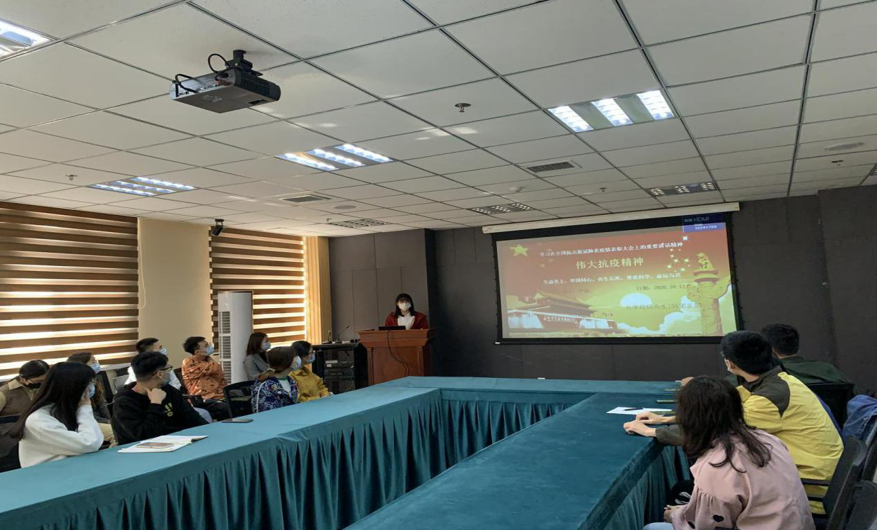 抗疫是一场没有硝烟的战争,抗疫精神是支撑和激励全党全国各族人民英勇抗击疫情的强大精神力量,化学院研究生各团支部组织学习全国抗击新冠肺炎疫情表彰会议大会精神,通过精神学习、实例分享、感悟交流等对抗疫精神进行了学习,牢记抗疫精神,从抗疫精神中学习新时代爱国精神,为国家的抗疫贡献一份力量。